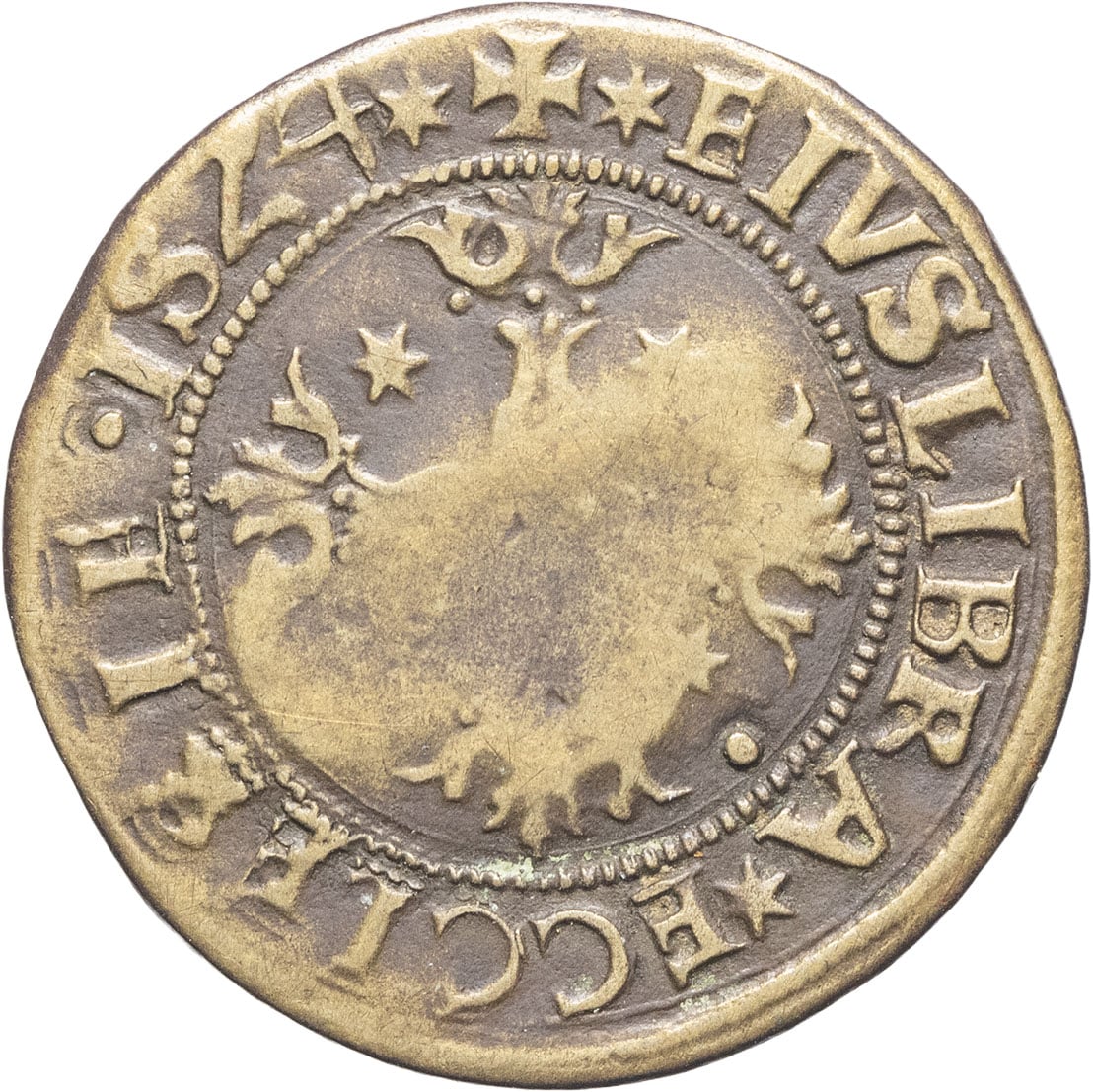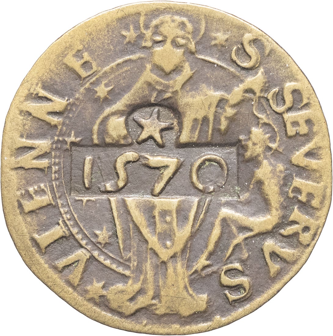 - FRANCE / FEUDAL Dauphiné, méreaux ecclésiastiques. Jeton, livre de l’église de Saint-Sévère de Vienne 1524, contremarqué 1570.