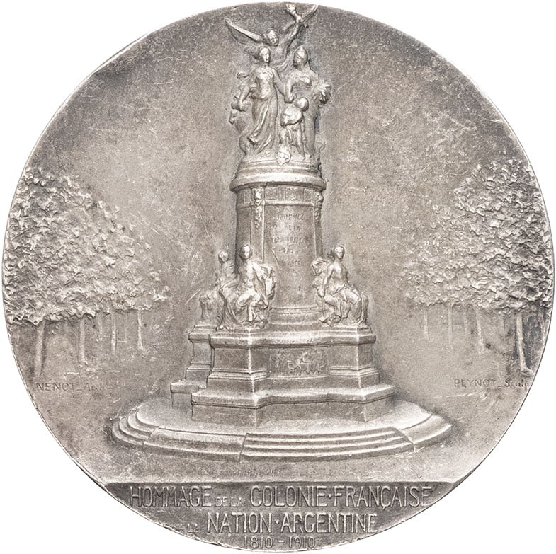 - ARGENTINA République. Médaille, hommage de la colonie française d’Argentine pour le centenaire de l’indépendance 1910.