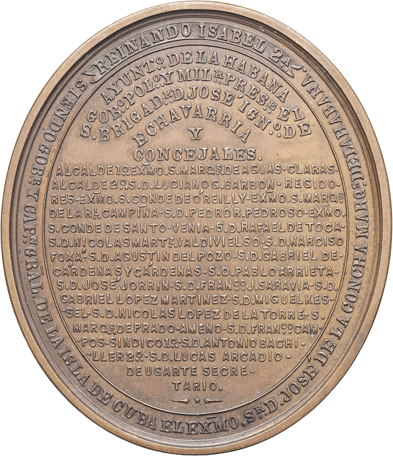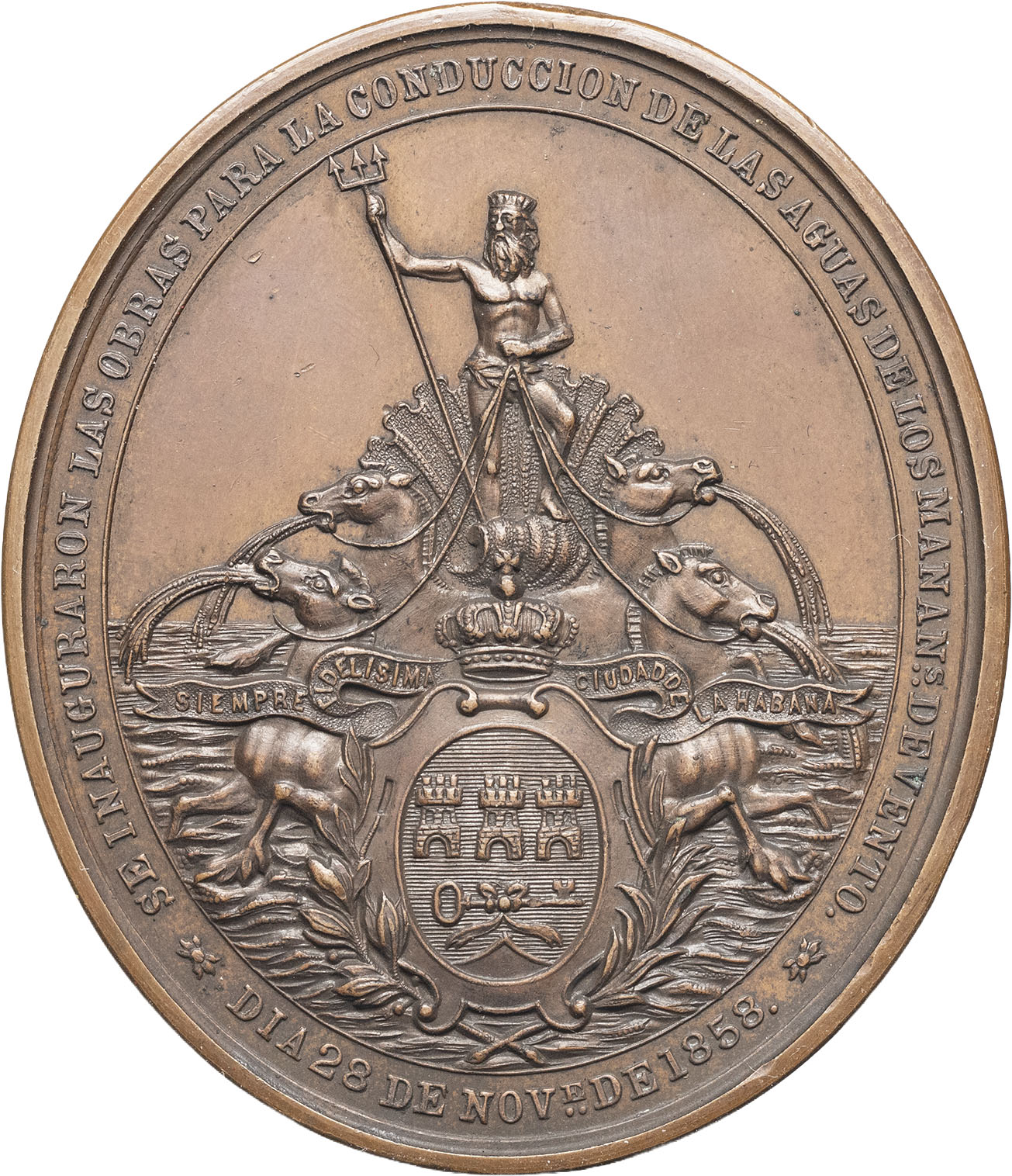 - Isabelle II (1833-1868). Médaille, acheminement de l’eau des manantiales de Vento à la Havane 1858.