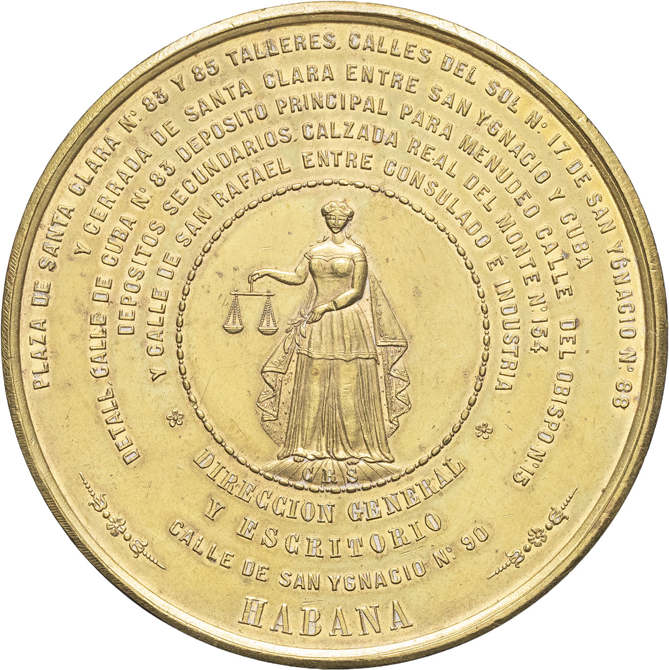 - Isabelle II (1833-1868). Médaille, grande manufacture de cigares et tabac haché de Luis Susini et fils à la Havane ND (c. 1860).