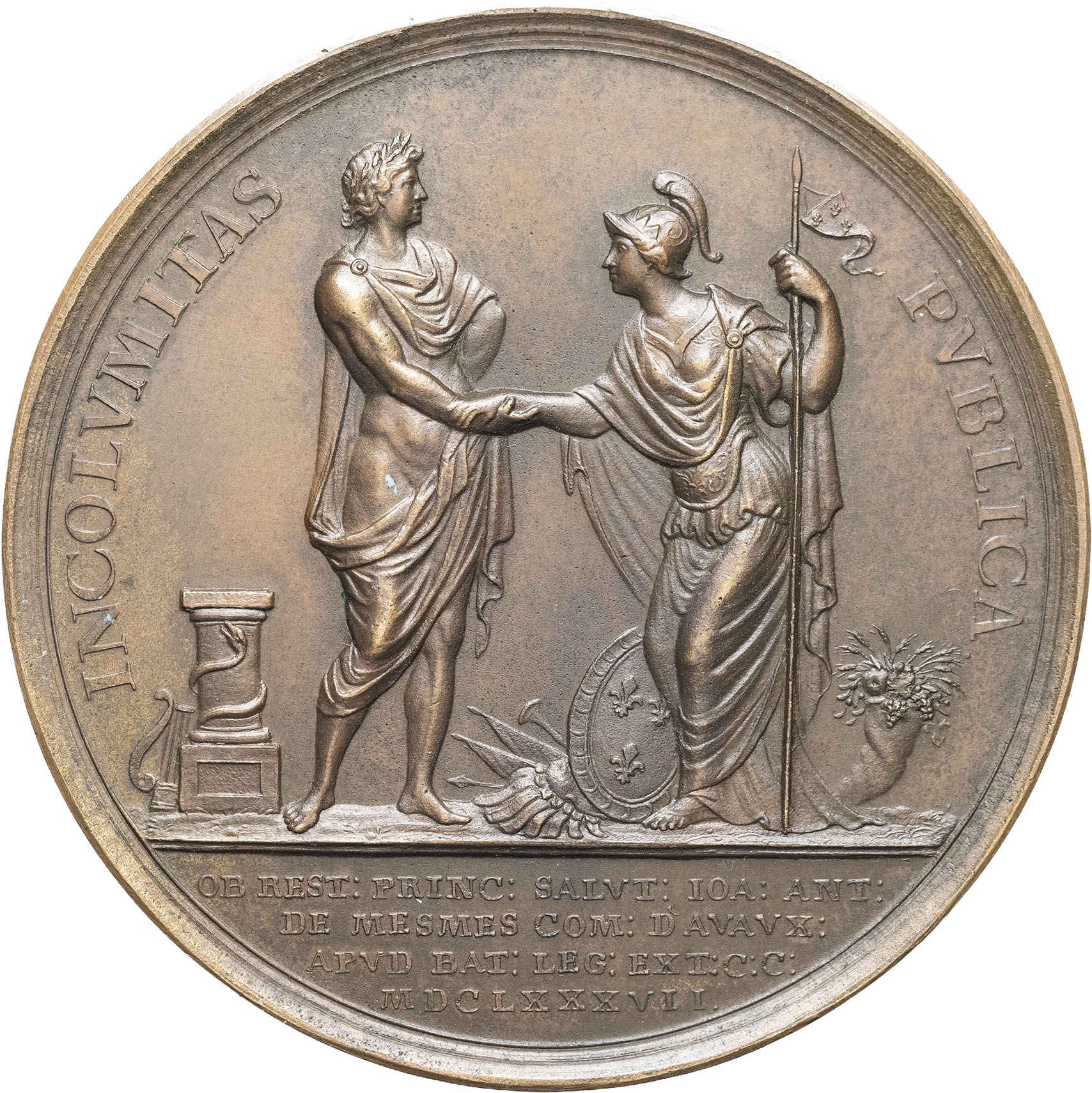 - FRANCE / ROYAL Louis XIV (1643-1715). Médaille, Guérison du Roi suite à ses opérations chirurgicales, par Arondeaux 1687, fonte postérieure, Paris.