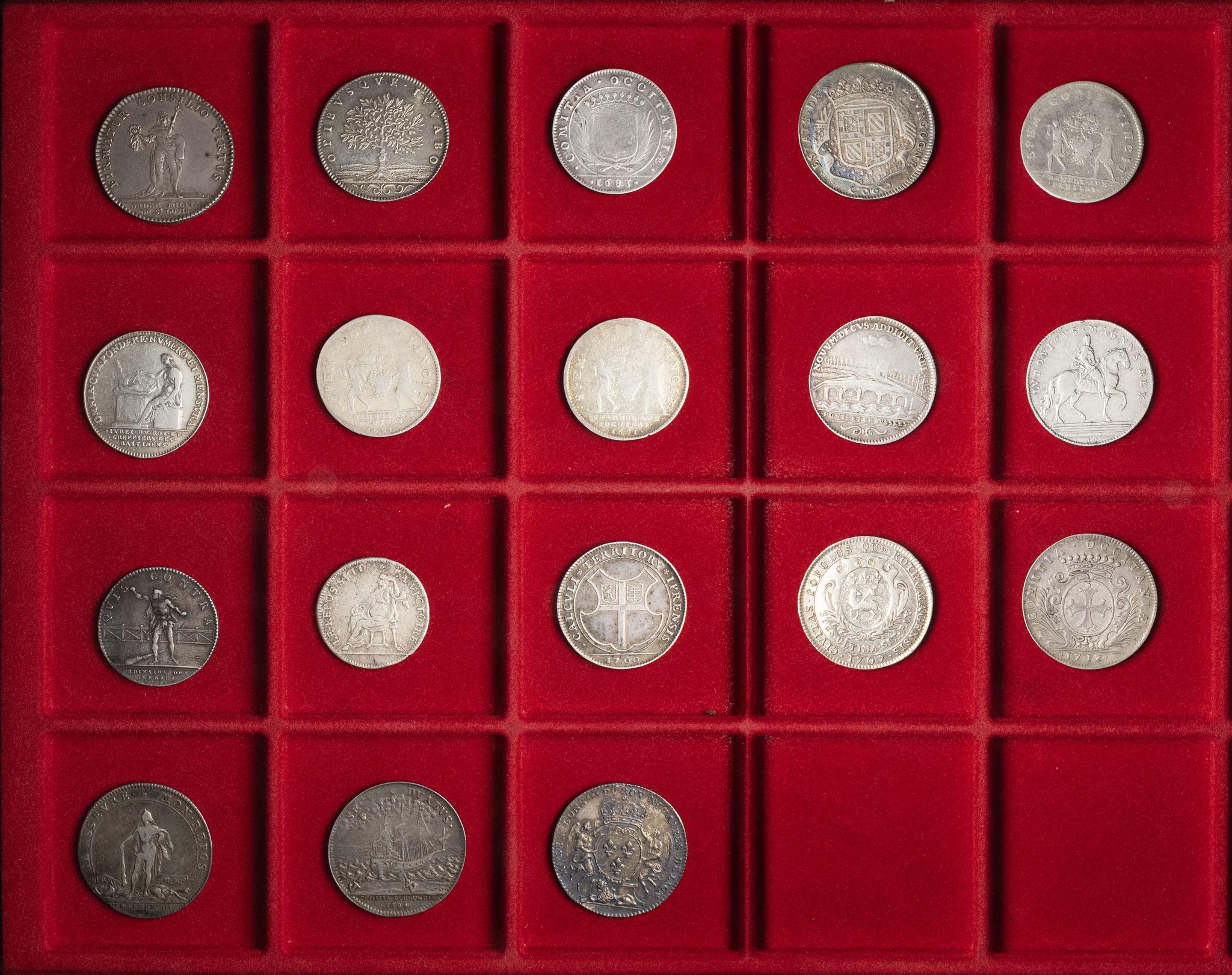 Lot. Lot de 18 jetons en argent ND.