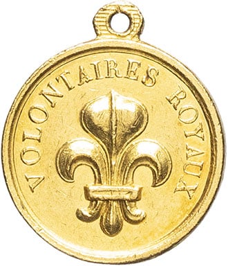 - Henri V (1820-1883). Médaillette Or, les volontaires royaux ND (1820), Paris.