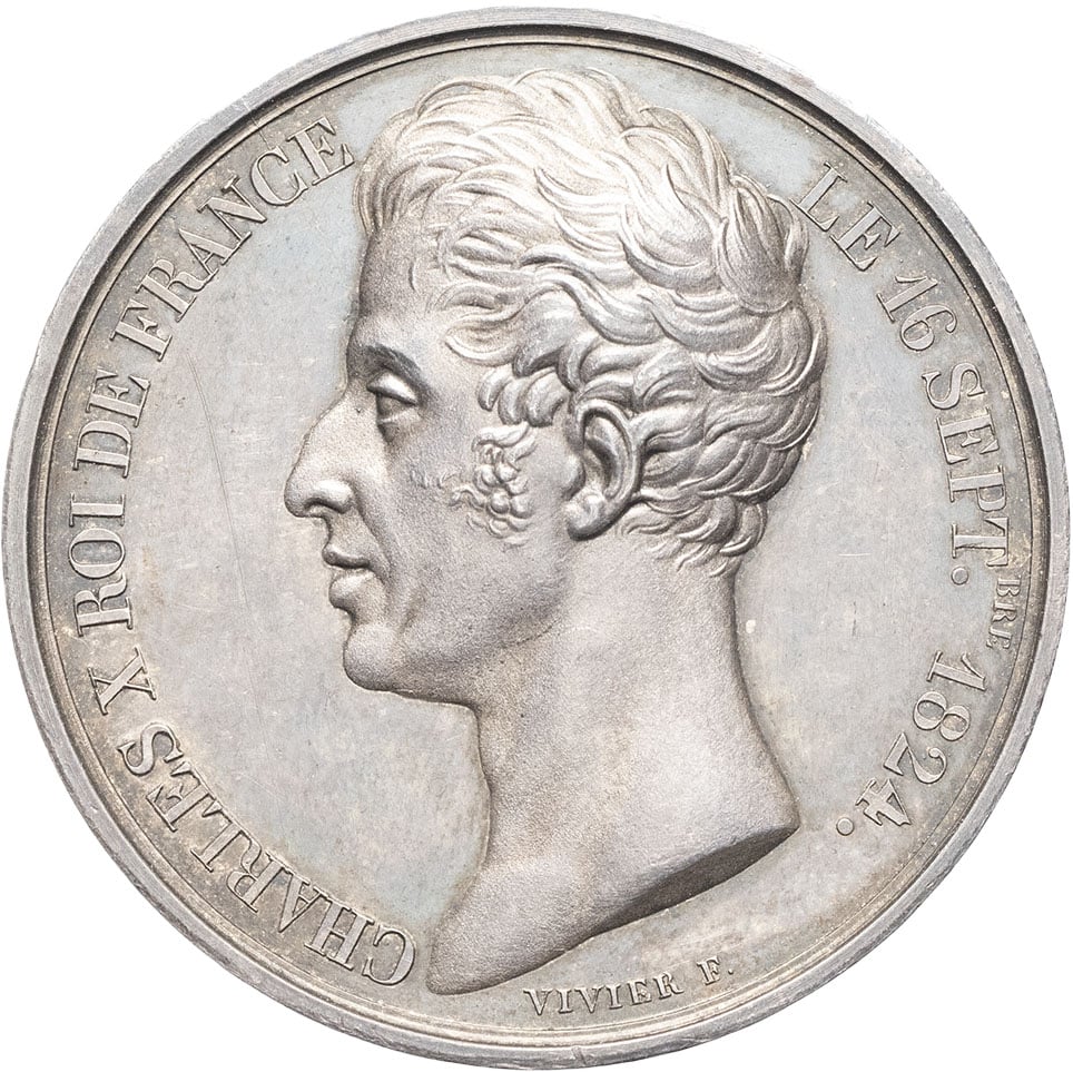 - Charles X (1824-1830). Médaille, avènement du roi, par Vivier et Leveque 1824, Paris.