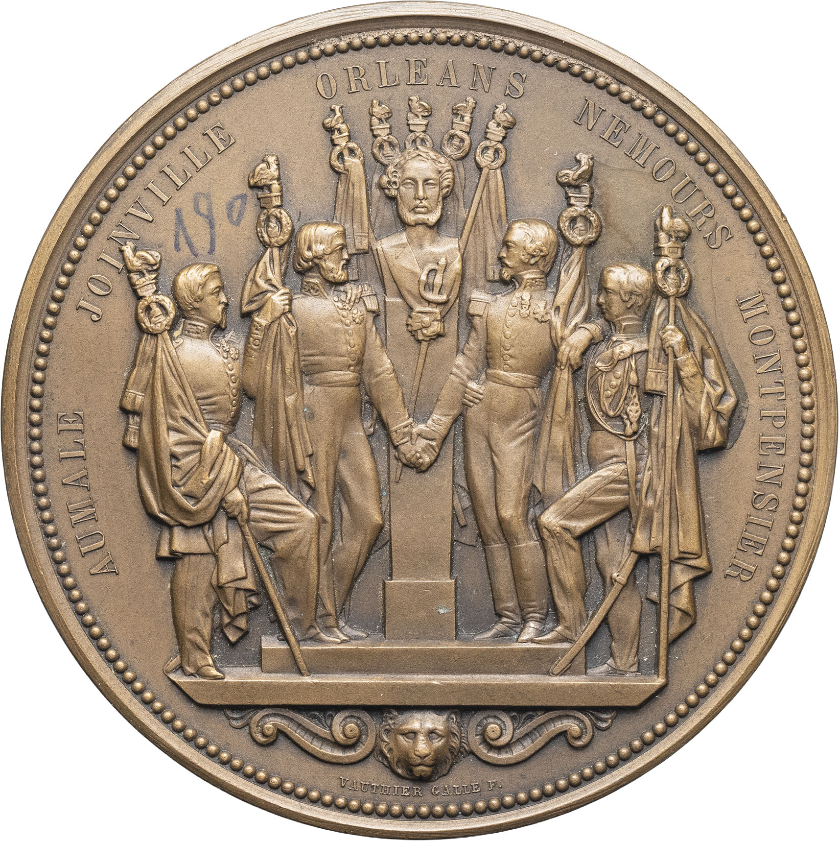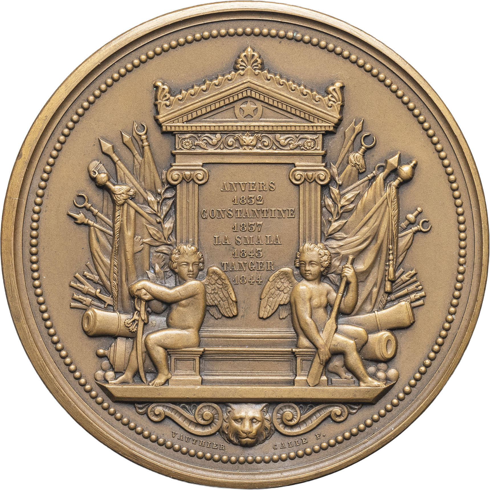 - Louis-Philippe Ier (1830-1848). Médaille, campagnes des fils de Louis-Philippe les ducs d’Aumale, de Joinville, d’Orléans, de Nemours et de Montpensier, par Vauthier Galle ND (refrappe XXe s.), Paris.