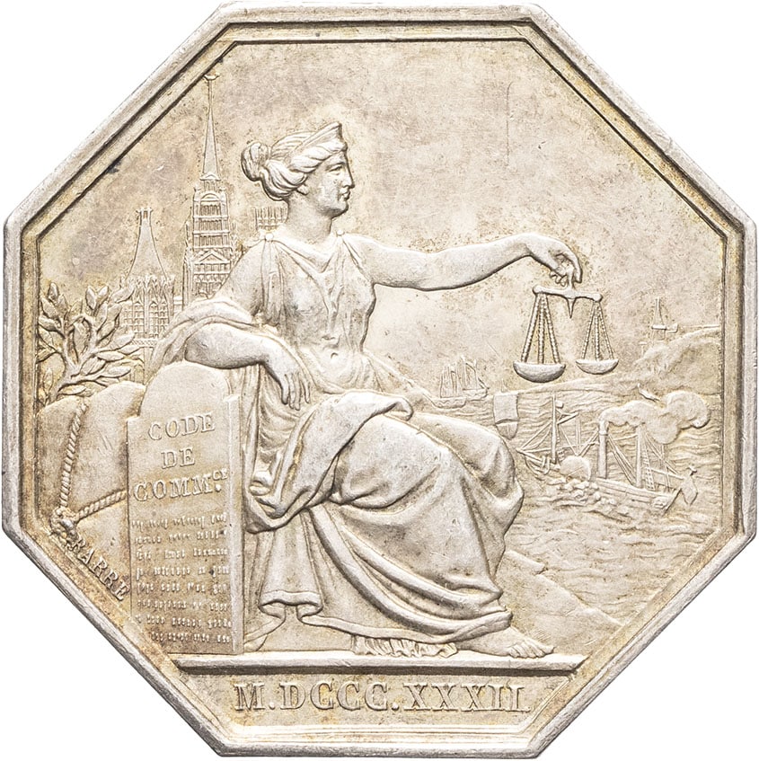 - Louis-Philippe Ier (1830-1848). Jeton, Tribunal de commerce de Rouen, par Barre 1832, Paris.