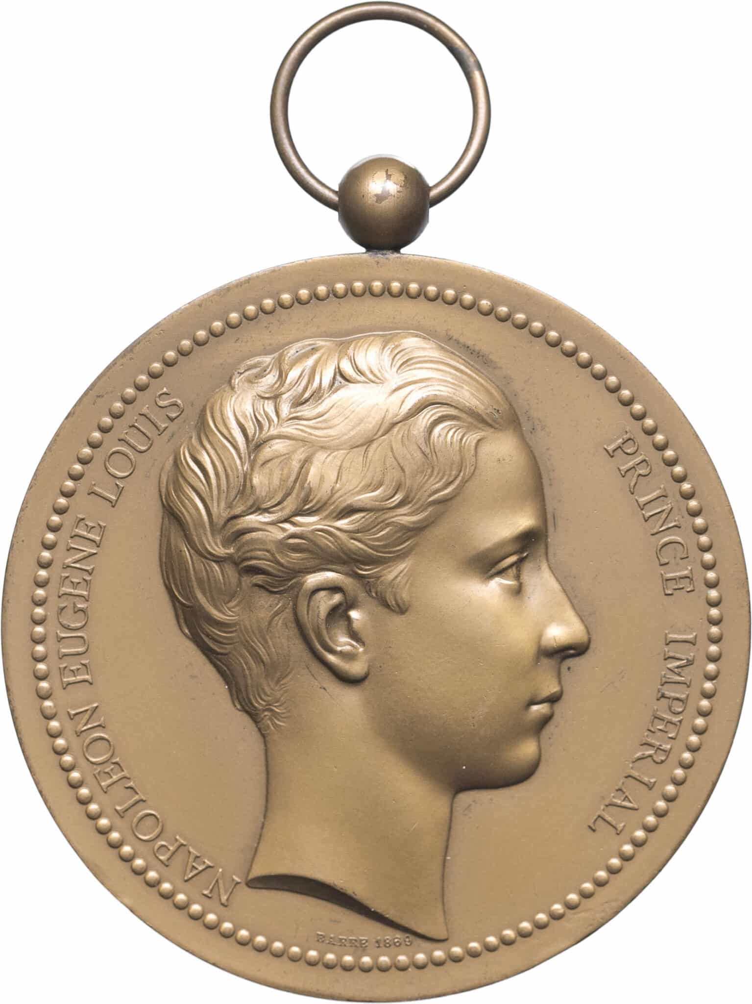 Second Empire / Napoléon III (1852-1870). Médaille, Le prince impérial est l’Exposition universelle, par A. Barre et Vauthier Galle 1869/1867 (refrappe 1968), Paris.