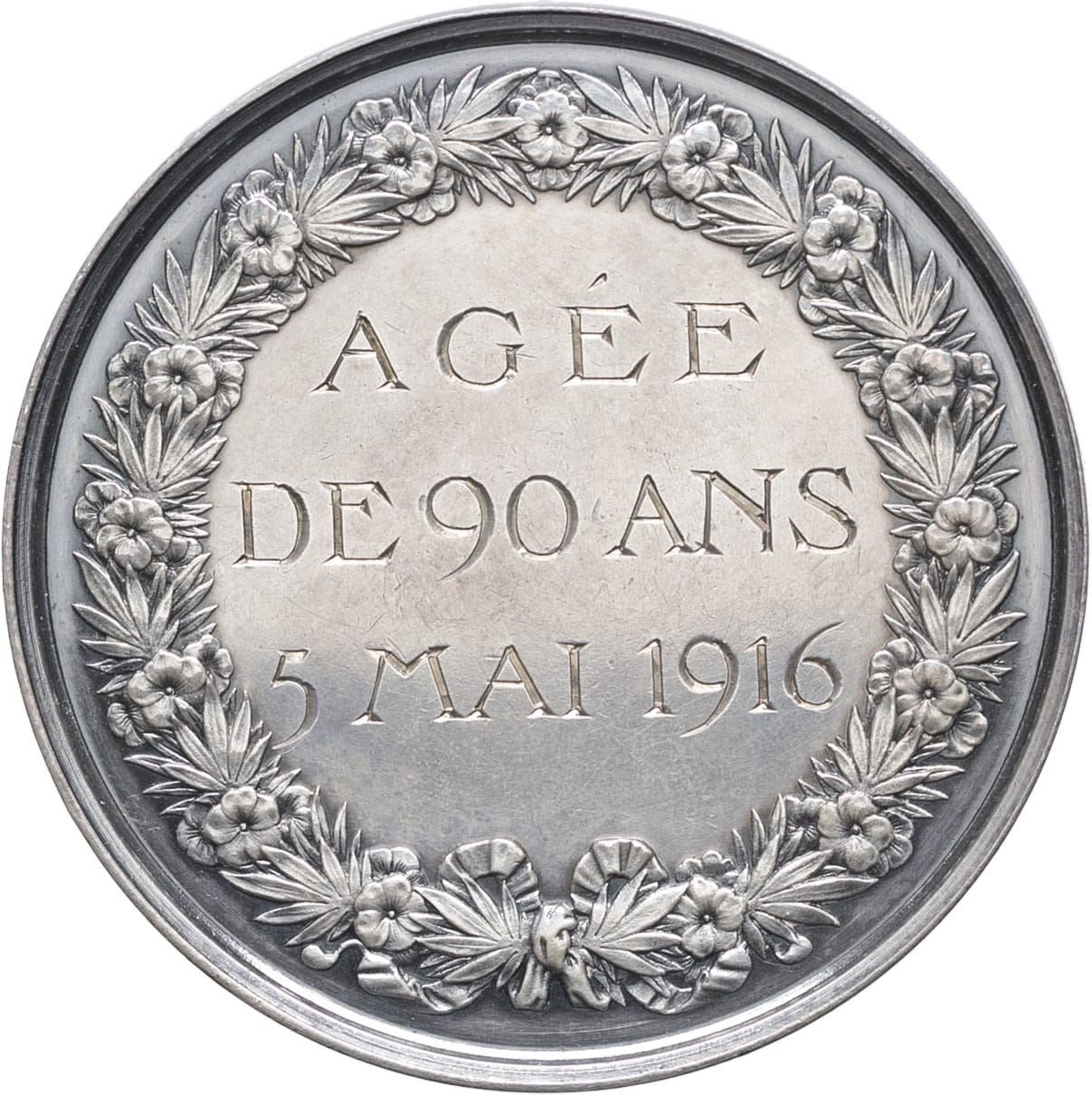 Cette médaille frappée à la fin du Second Empire a été gravée en 1916 pour marquer le 90e anniversaire d’Eugénie de Montijo