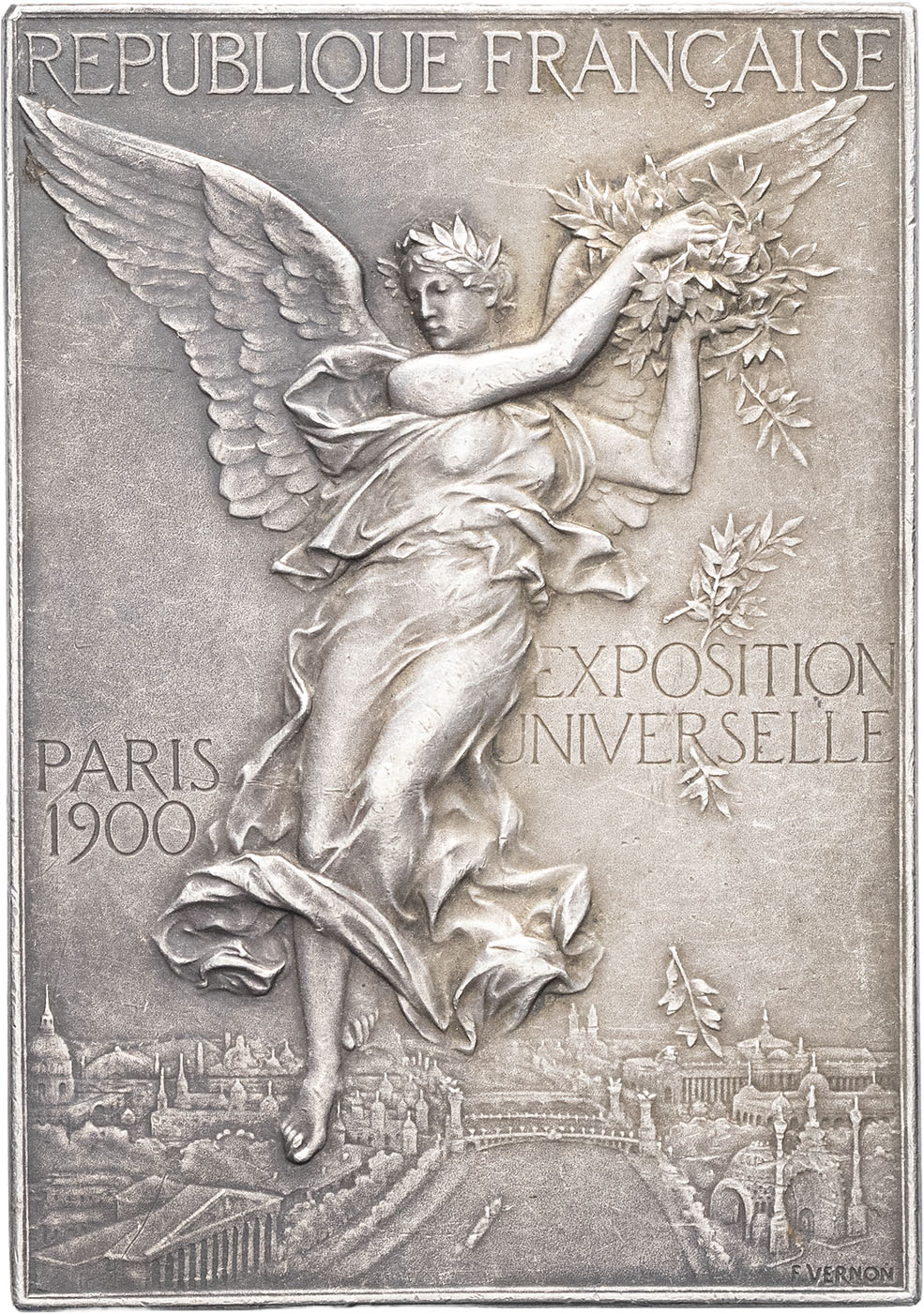 - IIIe République (1870-1940). Plaque, Concours de tir de l’Exposition universelle de Paris, par F. Vernon 1900, Paris.
