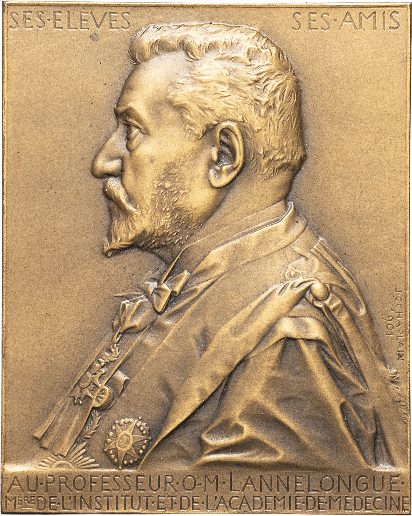 - IIIe République (1870-1940). Médaille, hommage au professeur Lennelongue membre de l’Académie de médecine, par J. C. Chaplain 1901, Paris.