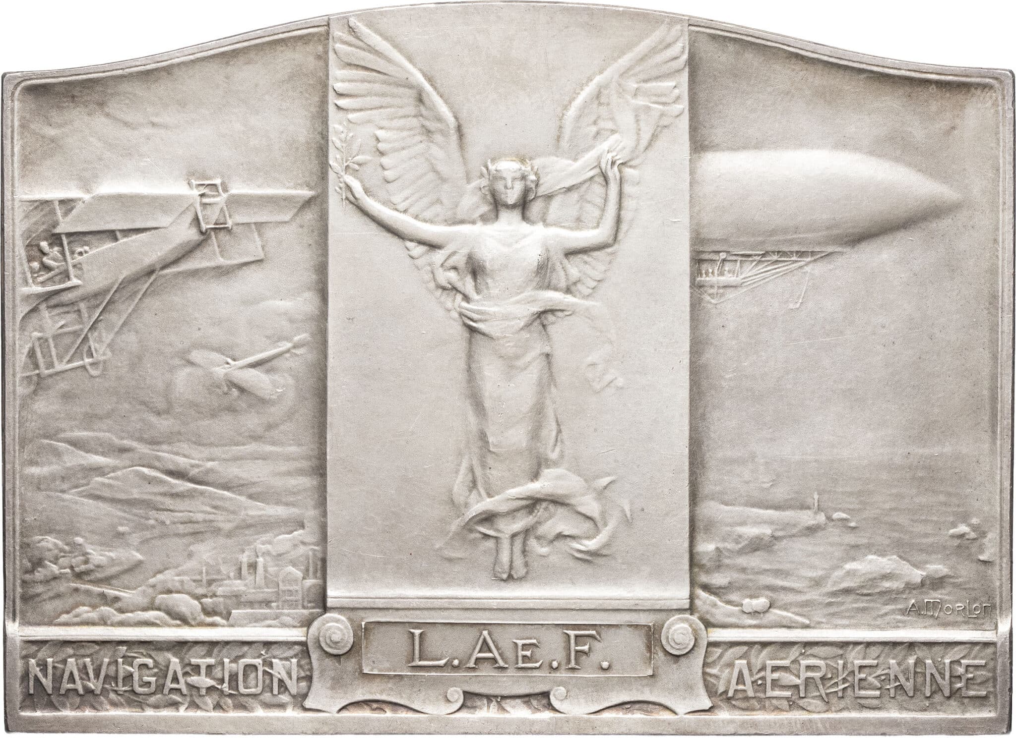 - IIIe République (1870-1940). Plaque, navigation aérienne, pour la Ligue Aéronautique de France, par A. Morlon ND (attribution en 1918), Paris.