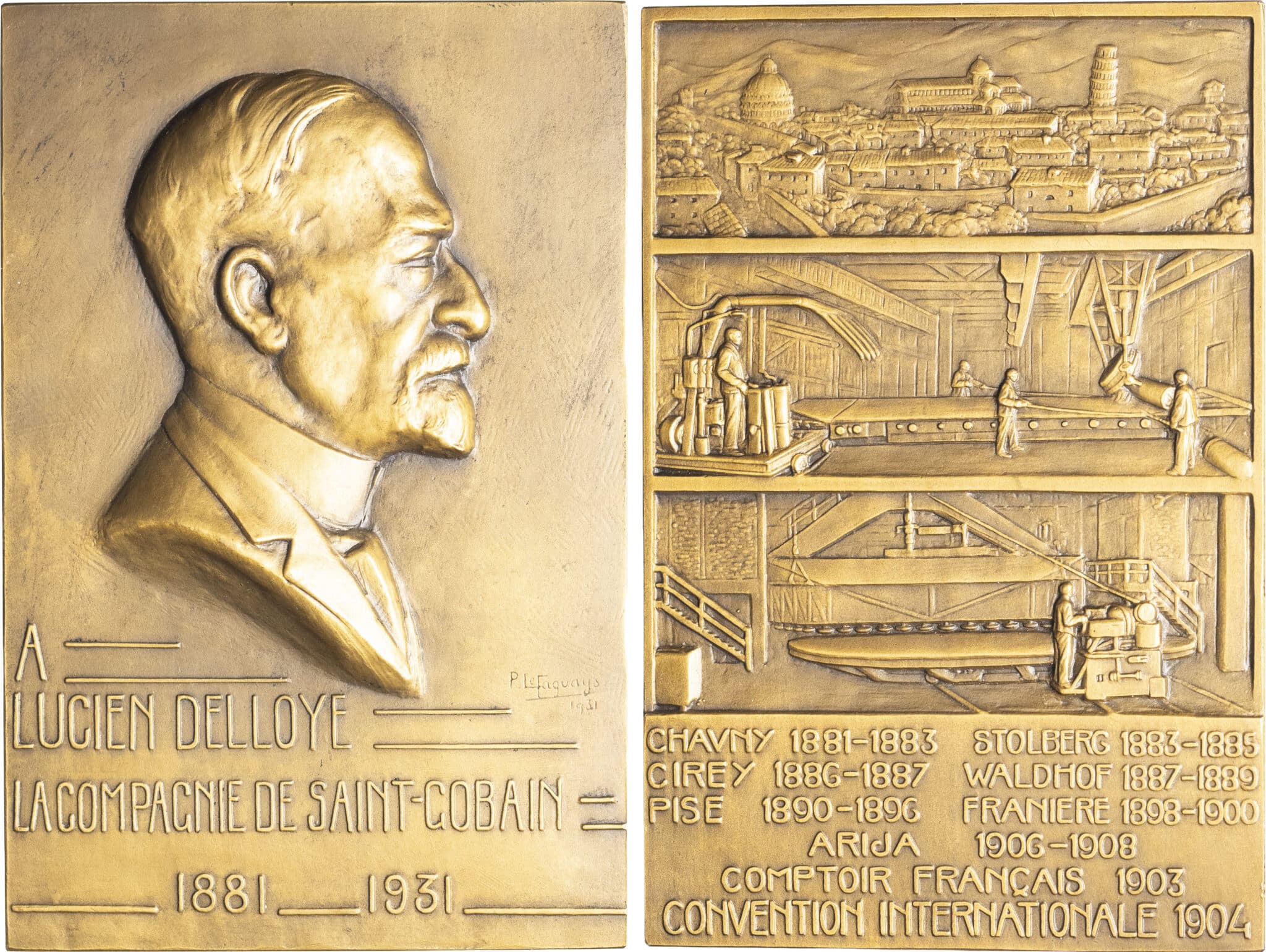 - IIIe République (1870-1940). Plaquette, hommage de la compagnie Saint-Gobain à Lucien Delloye, par P. le Faguays 1931, Paris.