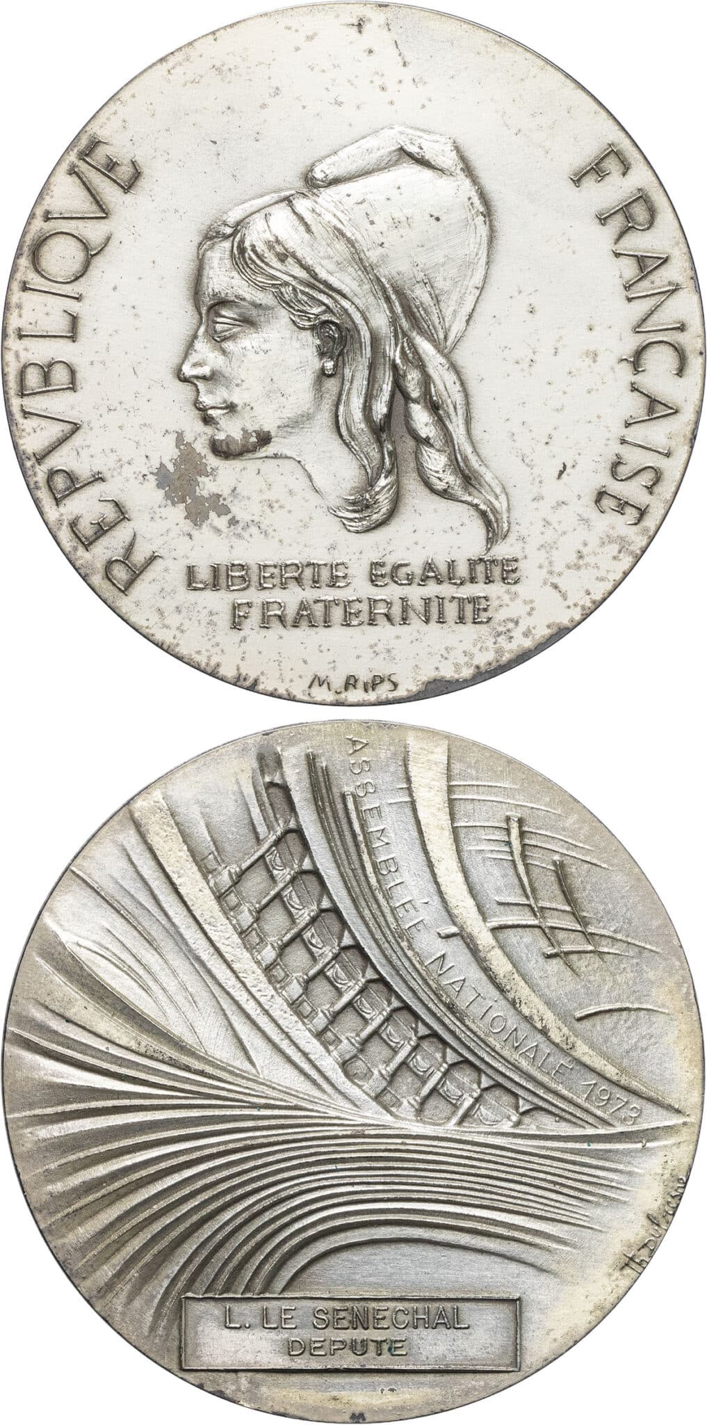 - Ve République (1958 à nos jours). Médaille d’identité de l’Assemblée nationale, par M. Rips et Th. Dufresne 1973, Paris.