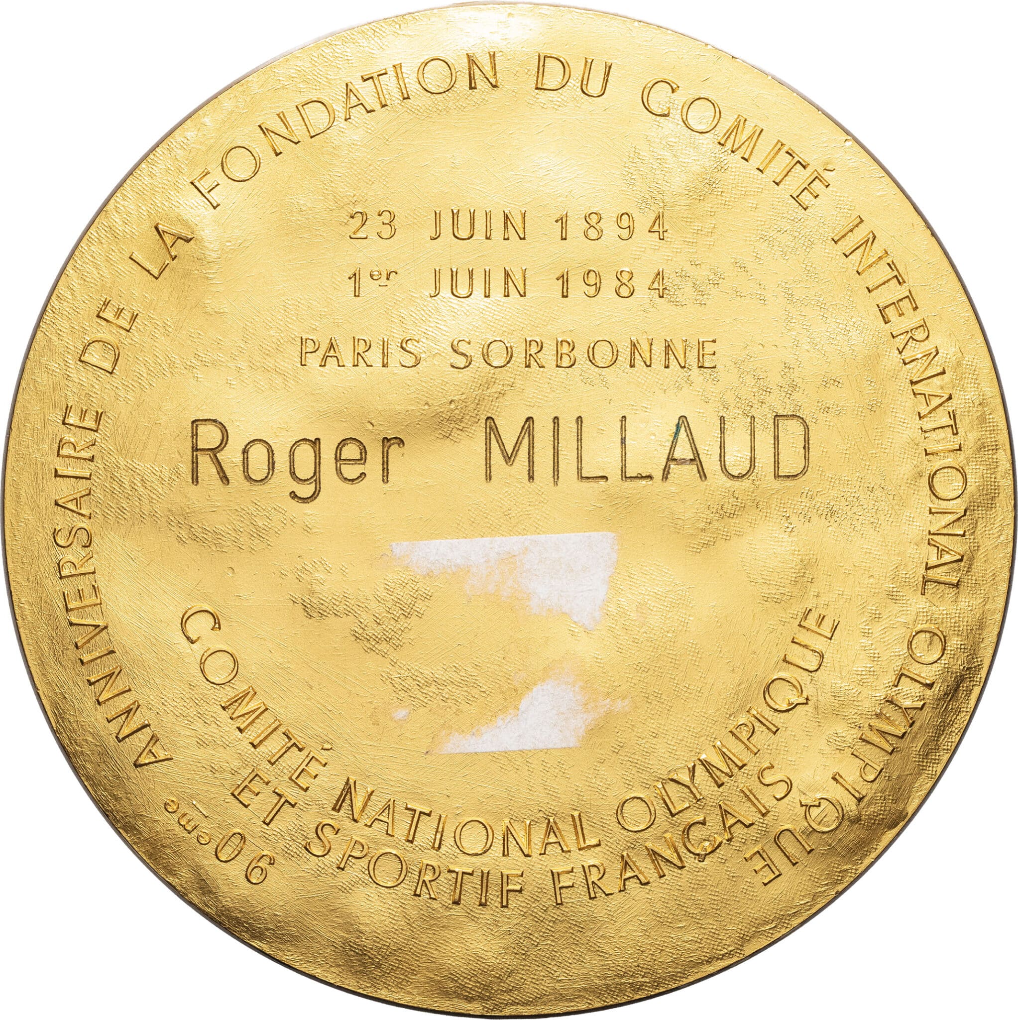 - Ve République (1958 à nos jours). Médaille, 90e anniversaire de la fondation du Comité International Olympique célébré à Paris Sorbonne, Pierre de Coubertin 1984, Paris.