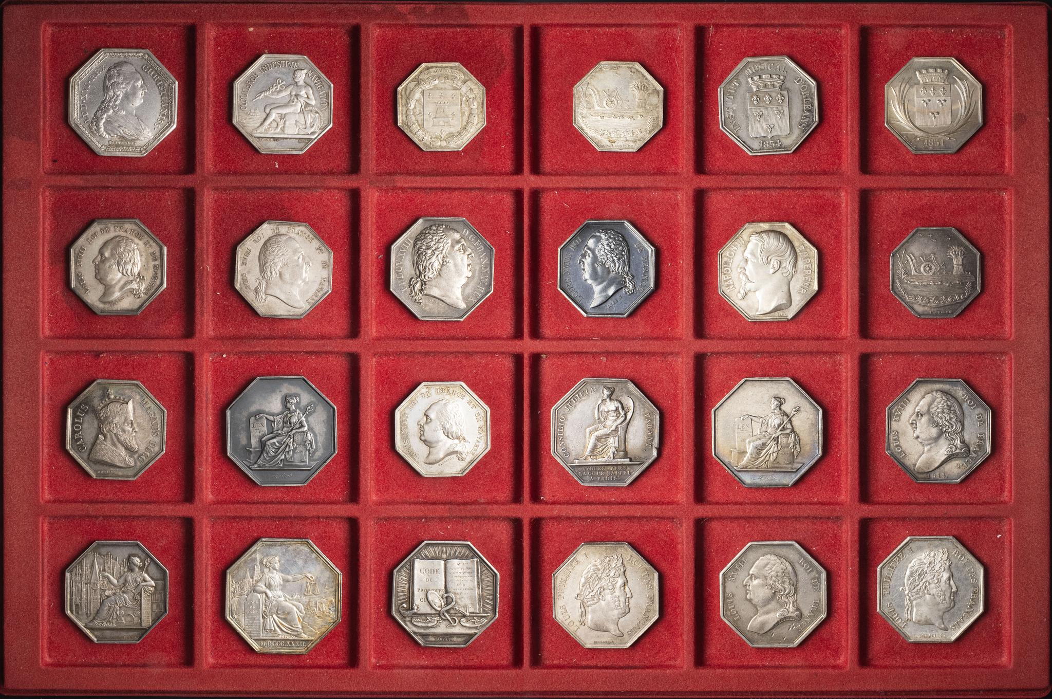 Jetons aux portraits de Louis XVI, Louis XVIII, Louis-Philippe Ier, Napoléon III