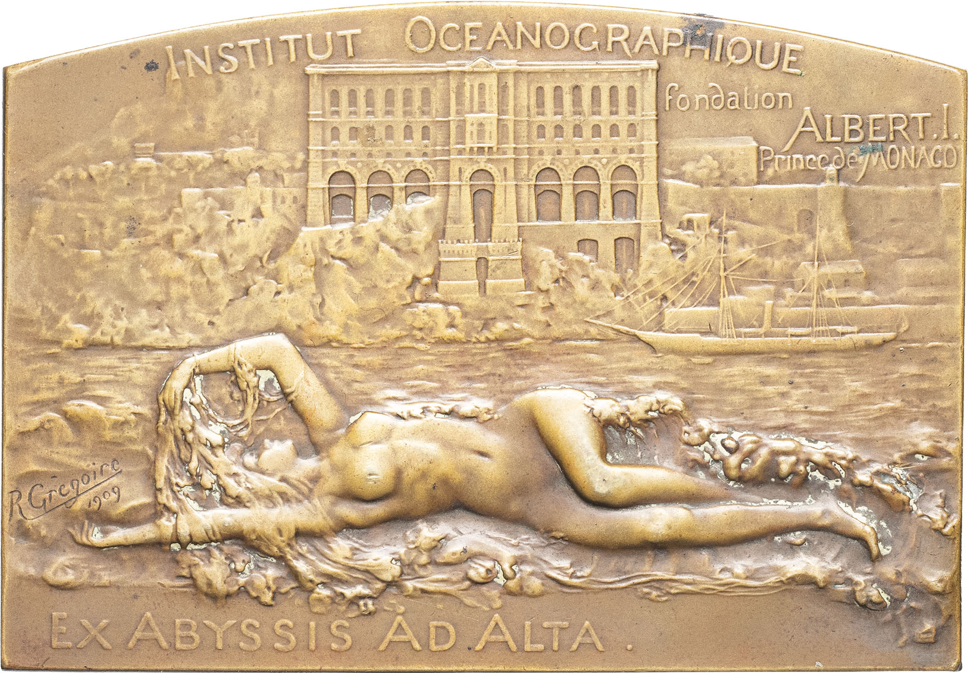 - Albert Ier (1889-1922). Plaque de l’Institut Océanographique, fondation Albert Ier par Grégoire 1909.
