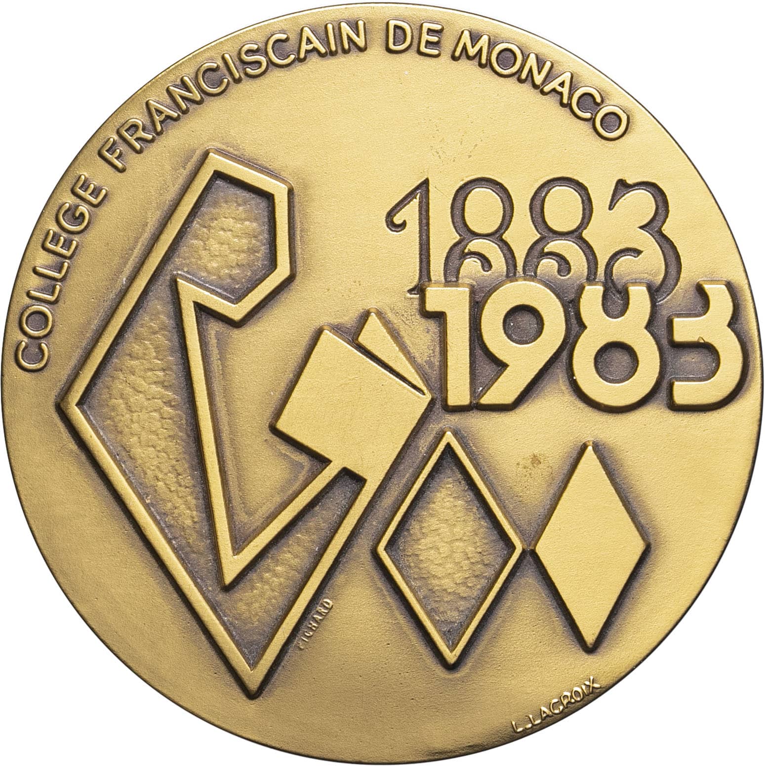 - Rainier III (1949-2005). Médaille, Collège franciscain de Monaco, par L. Lacroix 1983, Saumur (Pichard).