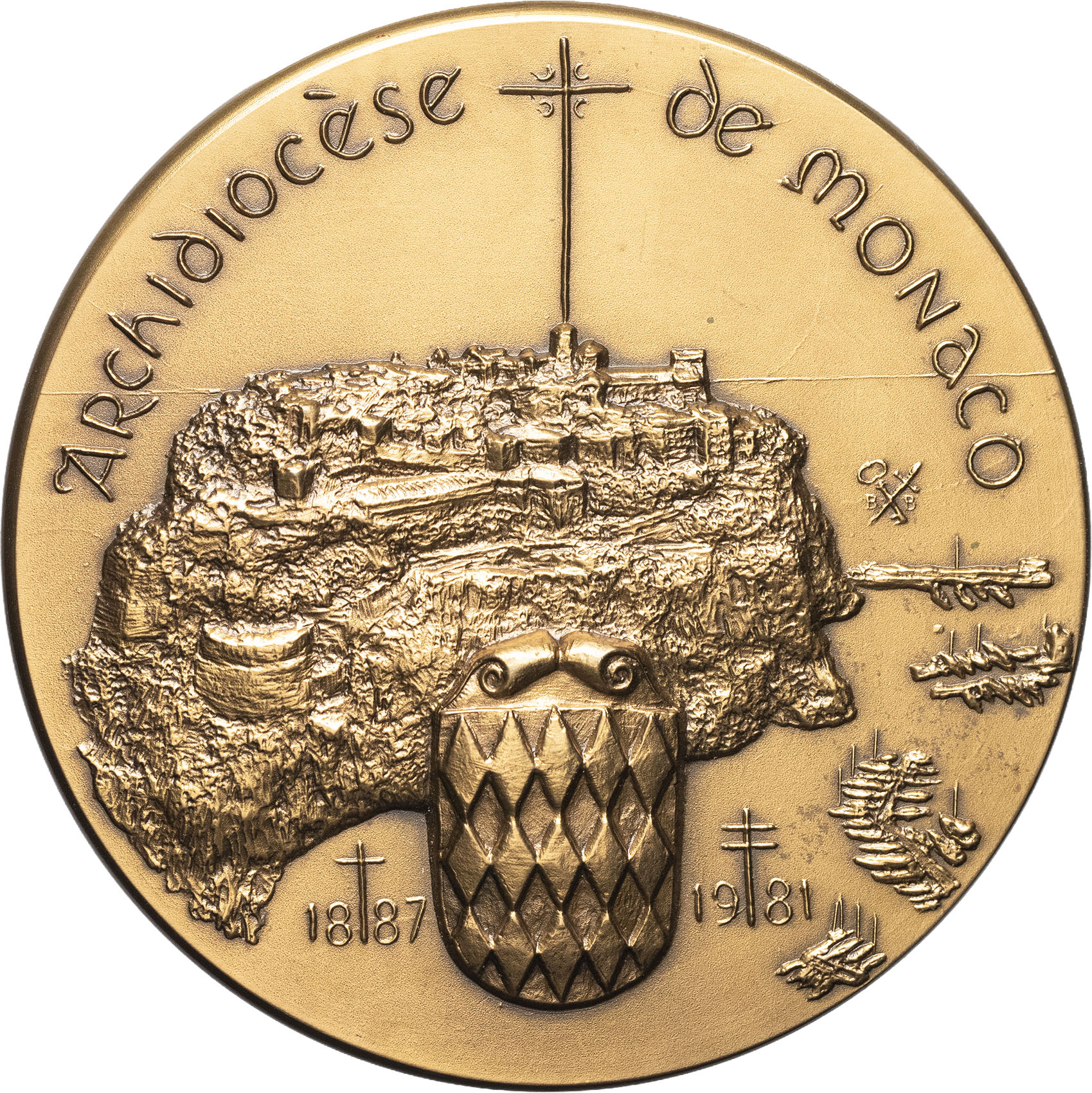 - Rainier III (1949-2005). Médaille, 20e anniversaire de l’archidiocèse de Monaco, par P. Lovy 2001, Paris (Arthus-Bertrand).