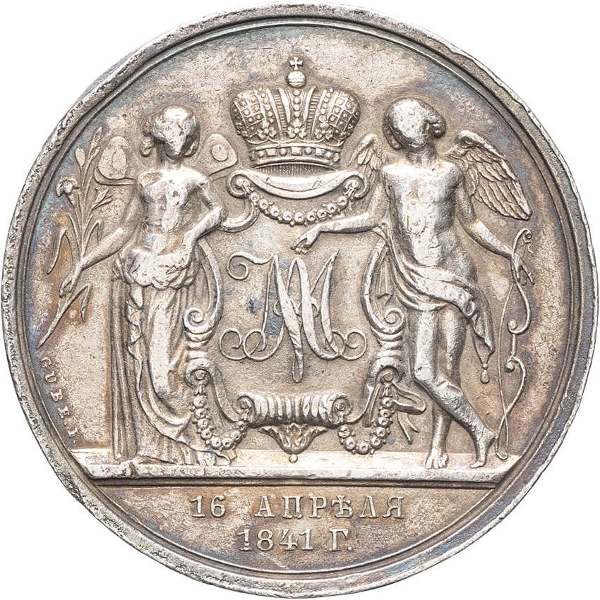 - RUSSIA Nicolas Ier (1825-1855). Médaille au module d’un rouble, mariage du grand duc Alexandre Nikolaïevich et Marie de Hesse-Darmstadt, par H. Gube 1841, Saint-Pétersbourg.