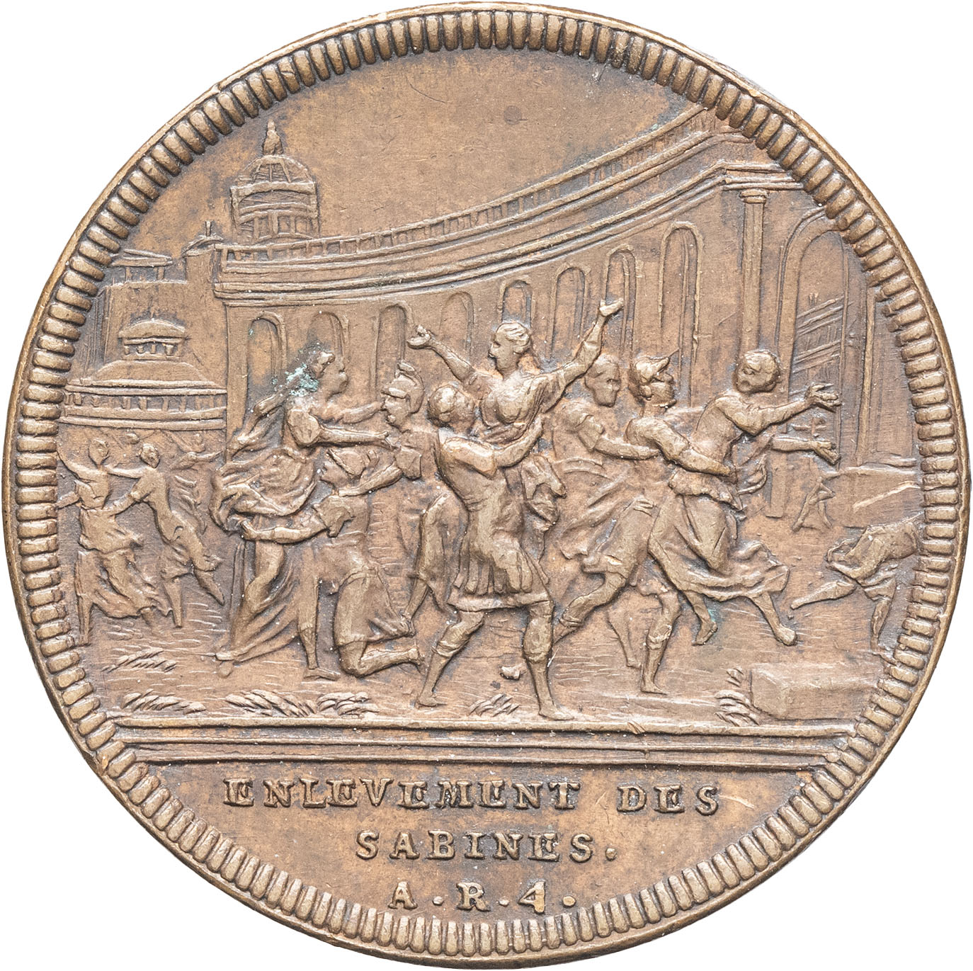 Genève (canton de). Médaille, l’histoire de la République Romaine, l’enlèvement des Sabines, par Jean Dassier et ses fils ND (série achevée en 1748), Genève.