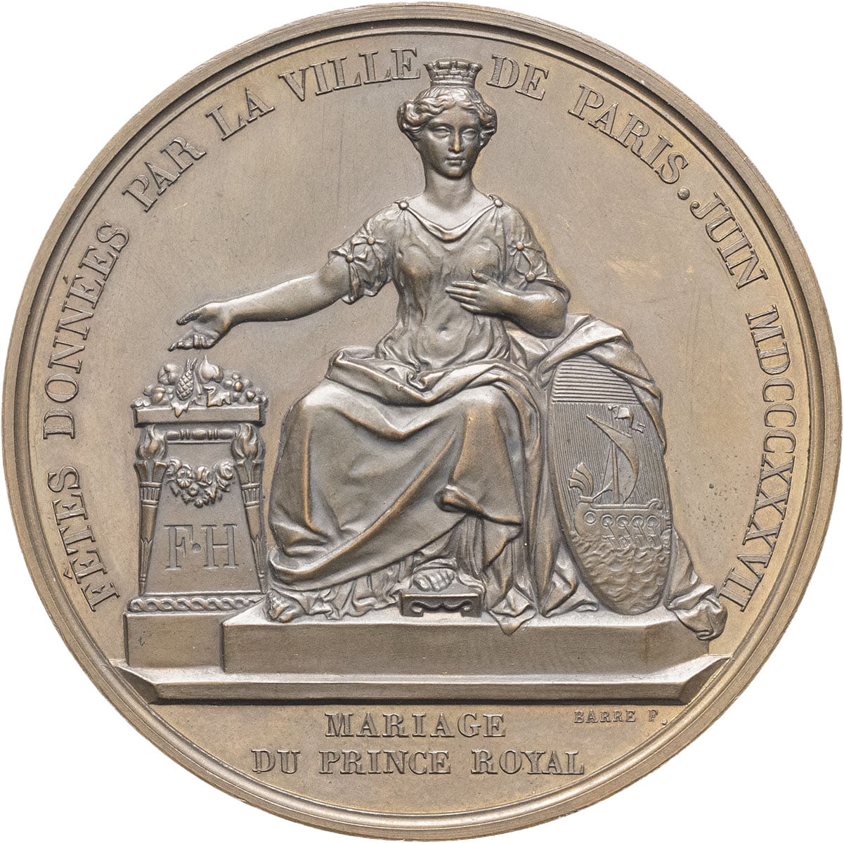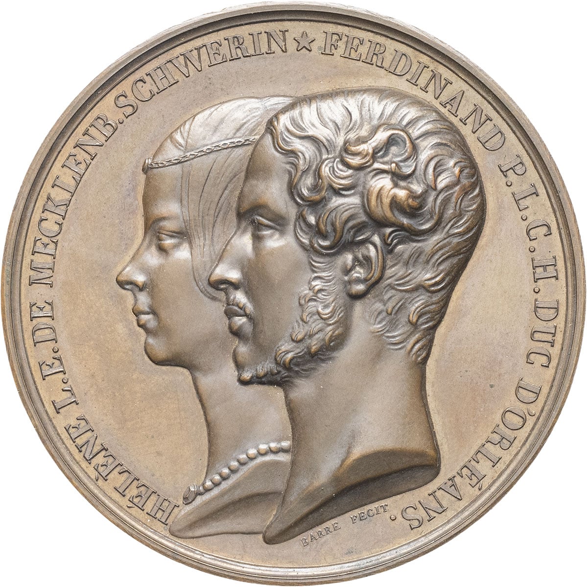 - MÉDAILLES - France, les Orléans. Médaille, mariage de Ferdinand-Philippe duc d’Orléans et Hélène de Mecklenbourg-Schwerin, fêtes données par la ville de Paris, par Barre 1837, Paris.
