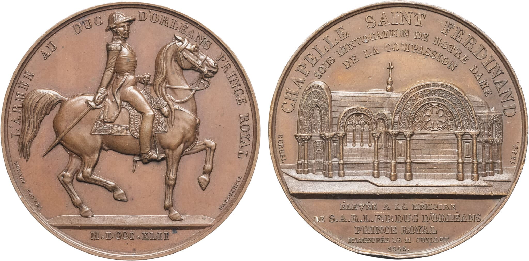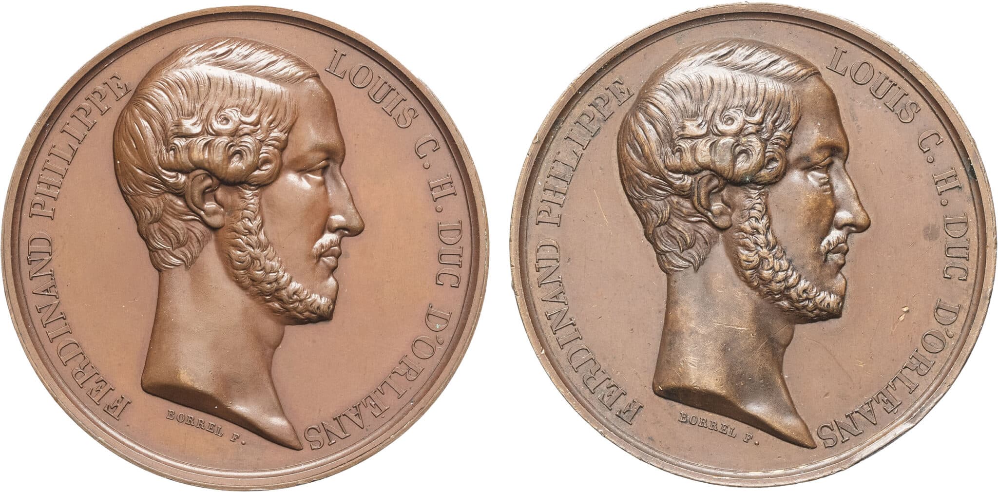 - MÉDAILLES - France, les Orléans. Lot de 2 médailles, Ferdinand-Philippe d’Orléans, par Borrel ND (1844), Paris.