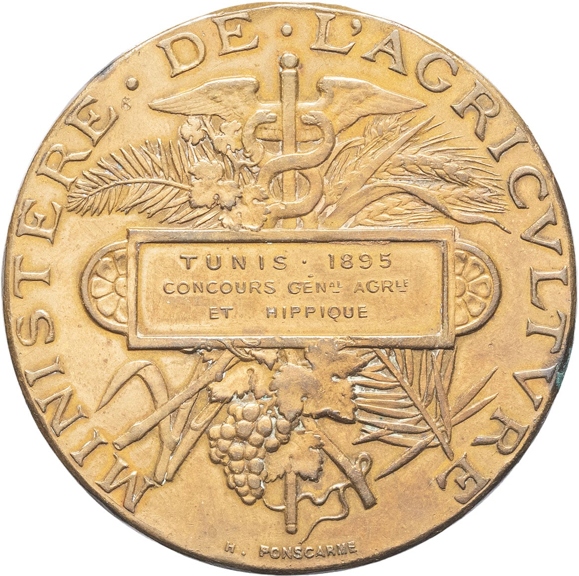 Attribution en relief au revers : TUNIS . 1895 / CONCOURS GÉNal AGRle / ET HIPPIQUE.