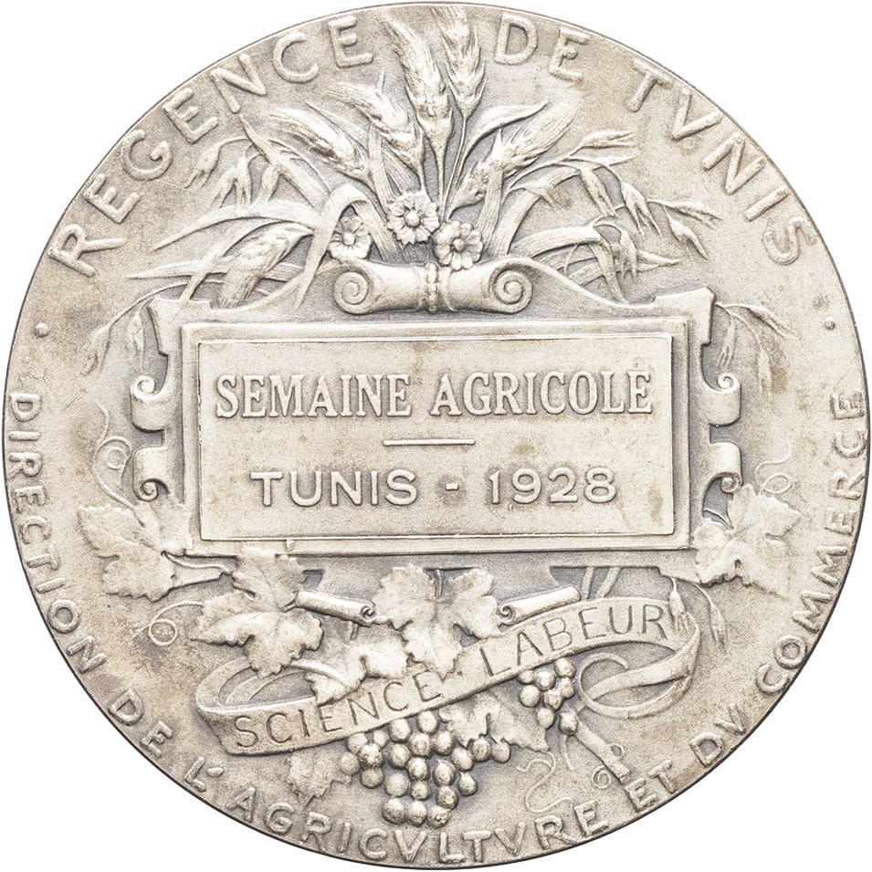 - TUNISIA Mohamed el-Habib, Bey (1922-1929). Médaille, Semaine agricole de Tunis, par Alphée Dubois 1928, Paris.