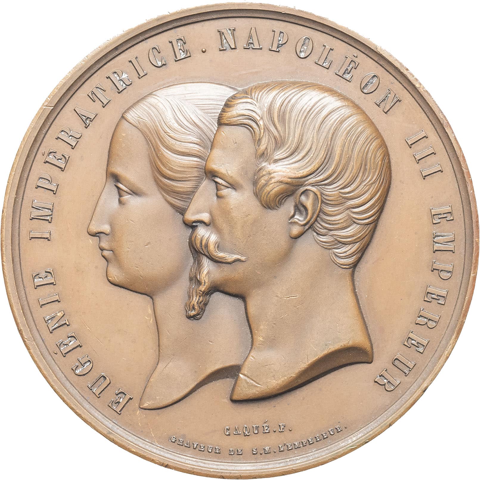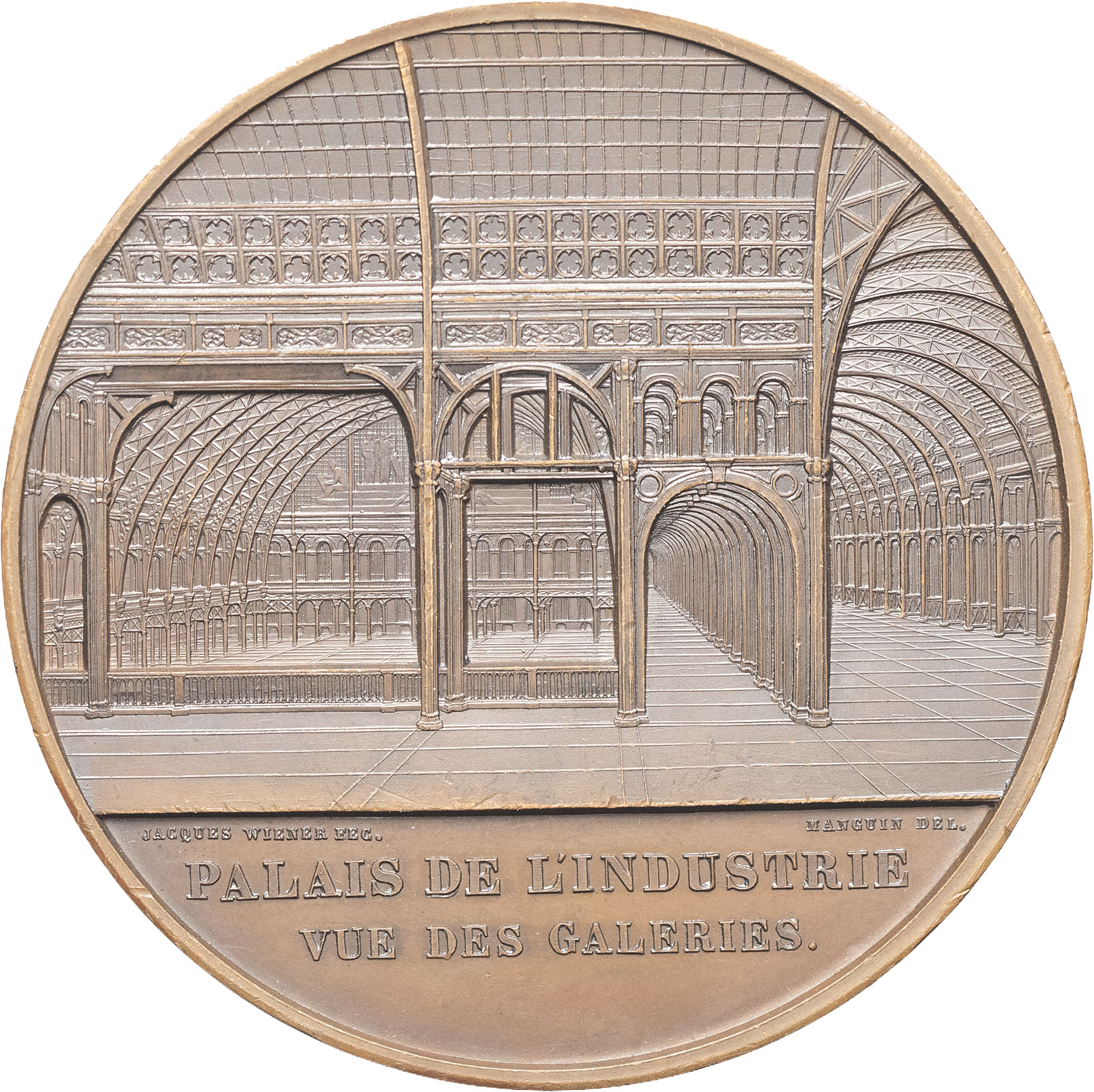 MÉDAILLES - France, Napoléon III (1852-1870). Médaille, exposition universelle de Paris, vue des galeries du palais de l’industrie, par Caqué et Wiener 1855, Paris.
