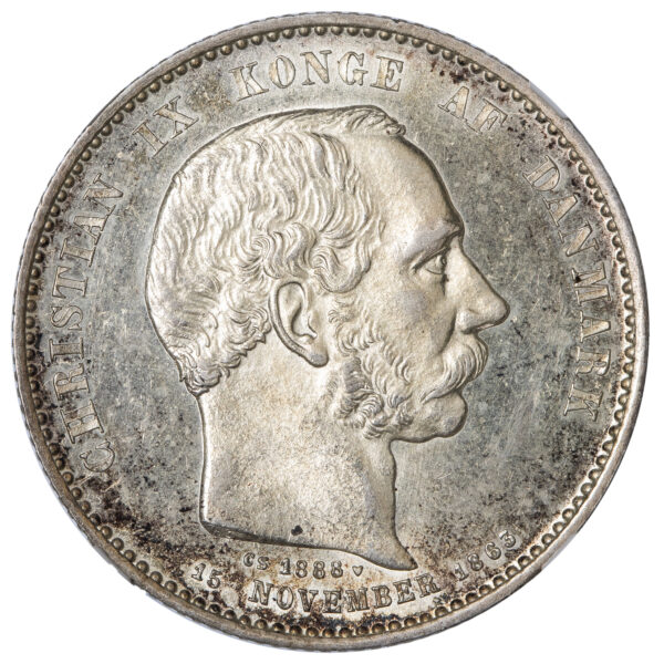 Christian IX (1863-1906). 2 kroner 1888, Copenhague.