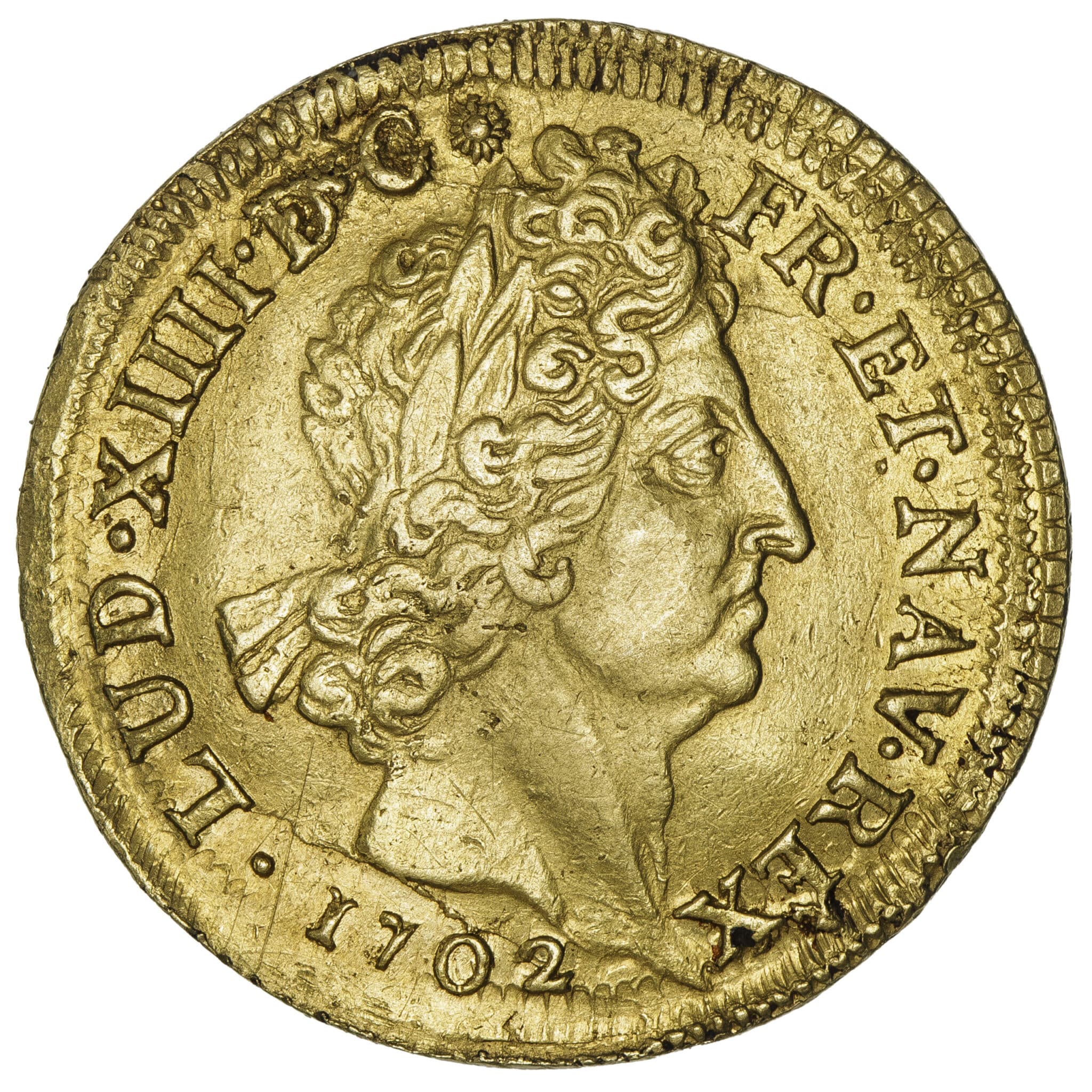 Louis XIV (1643-1715). Double louis d’or aux huit L et aux insignes 1702, P, Dijon.