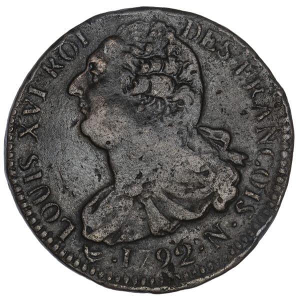 Constitution (1791-1792). 2 sols FRANÇOIS, poids lourd : 35,85 g 1792, N, Montpellier.