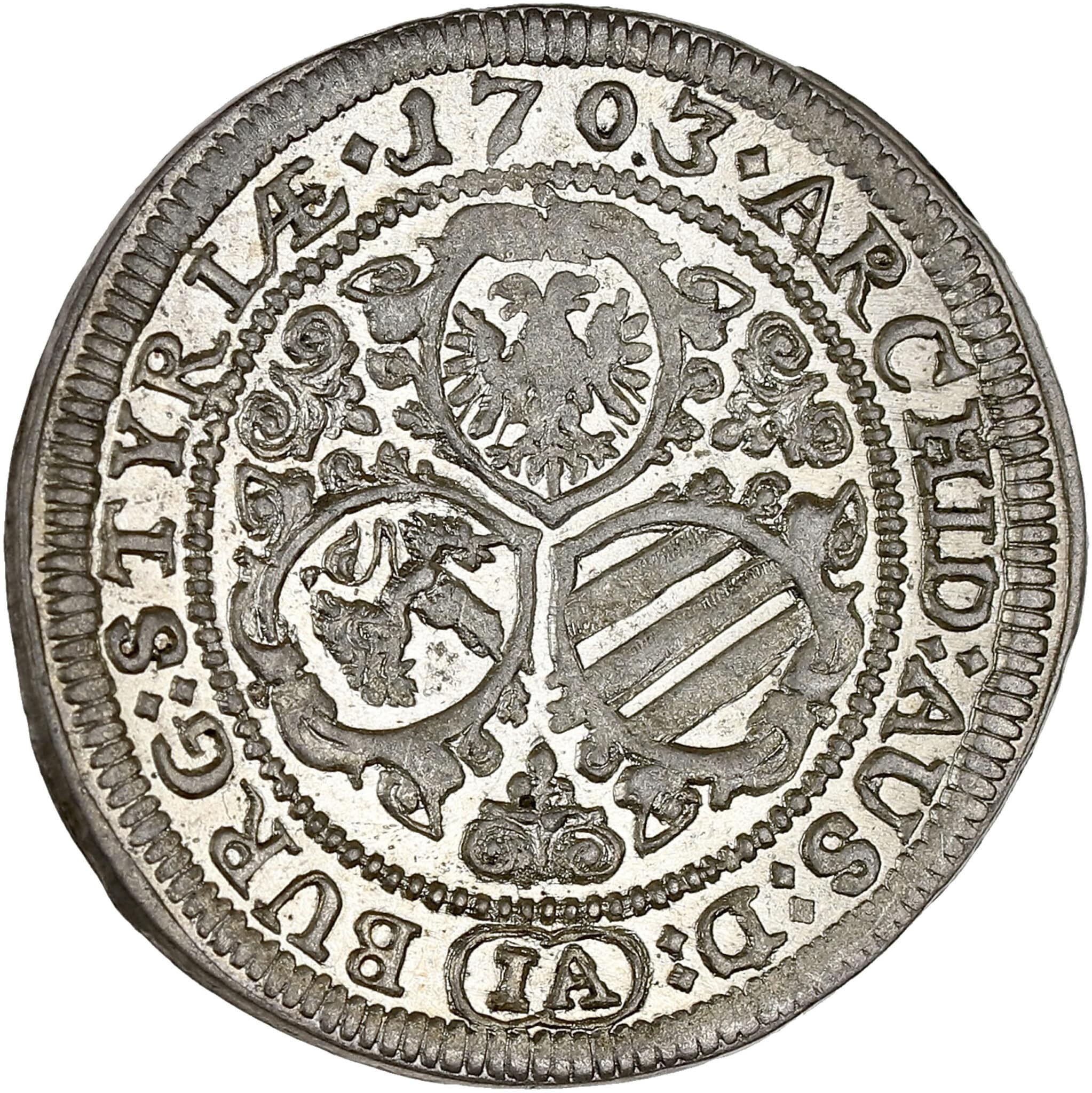 Léopold Ier (1657-1705). 3 kreuzers 1703 IA, Graz.
