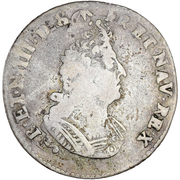 Louis XIV (1643-1715). Douzième d’écu aux palmes 1694, S, Reims.