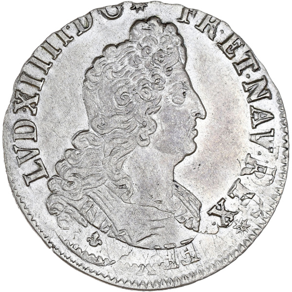 Av. LVD. XIIII. D. G (soleil) - FR. ET. NAV. REX. Buste à droite du Roi, cuirassé à l’antique.