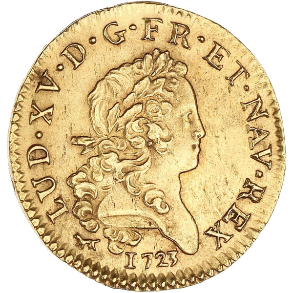 Louis XV (1715-1774). Louis d’or dit Mirliton aux palmes courtes 1723, A, Paris.