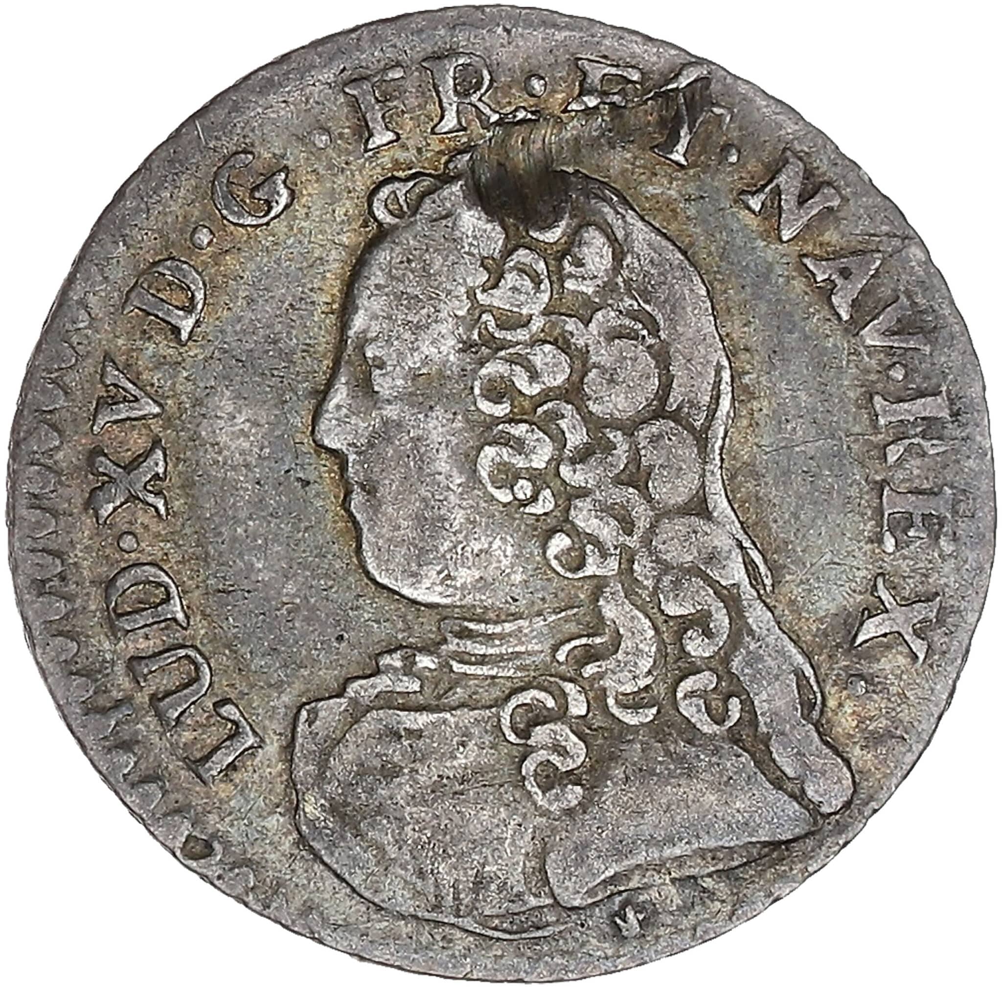 Av. LUD. XV. D. G. FR. ET. NAV. REX (différent). Buste du Roi à gauche, la tête nue, portant une veste brodée avec la croix de l’ordre du Saint-Esprit.