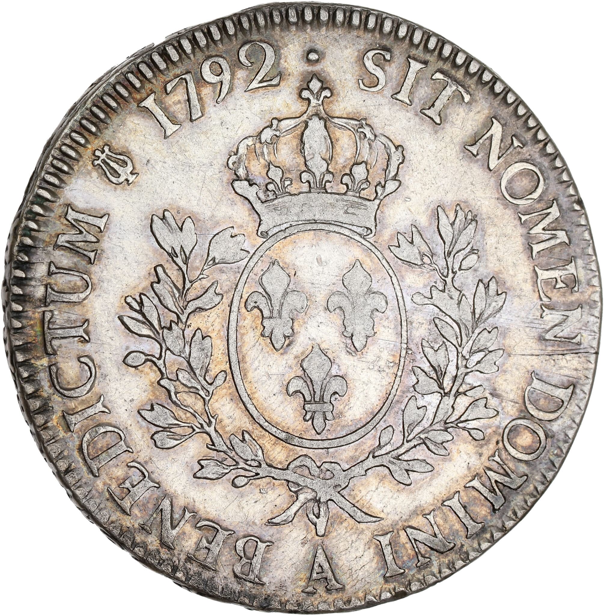 Louis XVI (1774-1792). Écu aux rameaux d’olivier 1792, A, Paris.