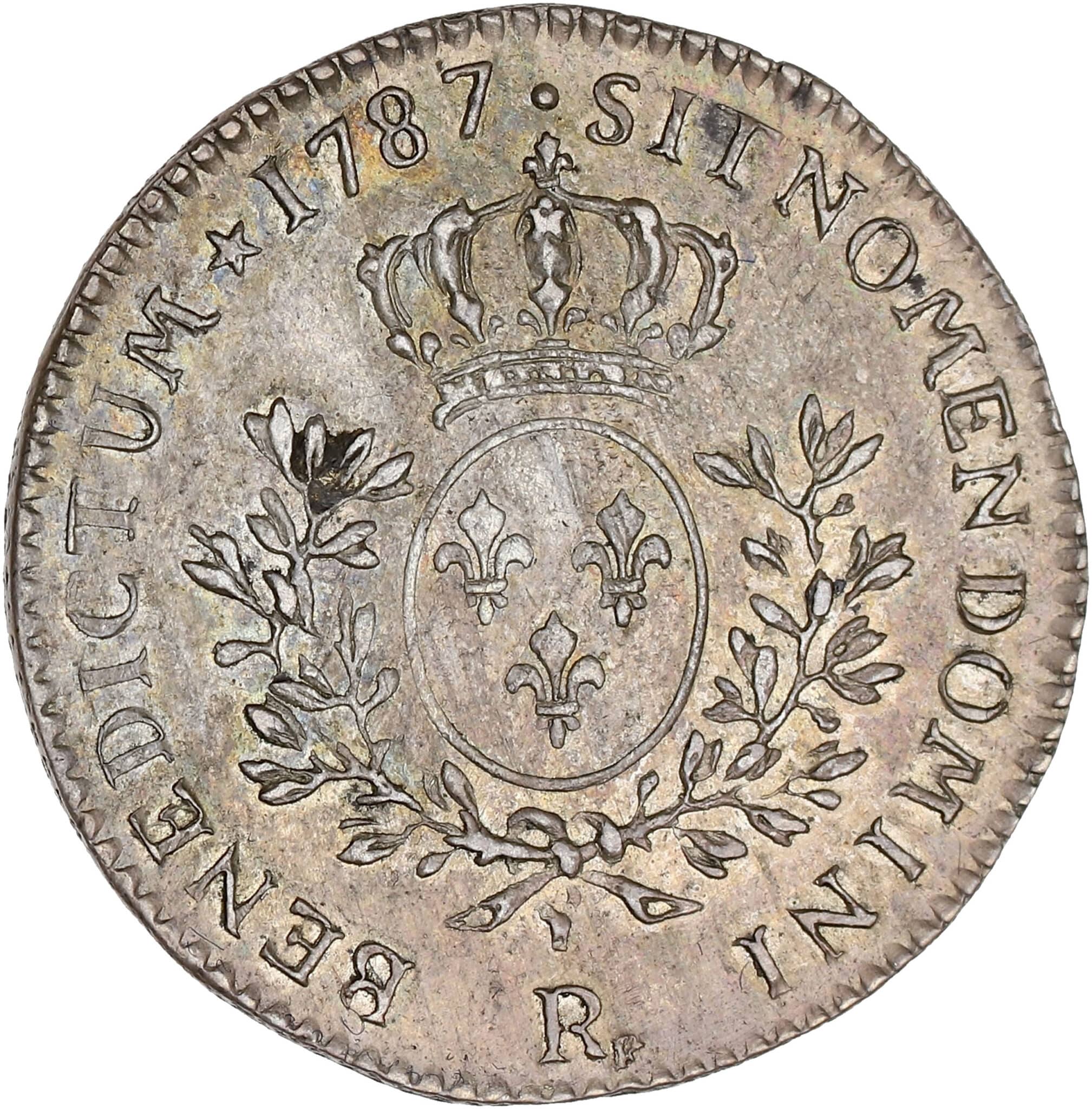 Louis XVI (1774-1792). Cinquième d’écu aux rameaux d’olivier 1787, R, Orléans.