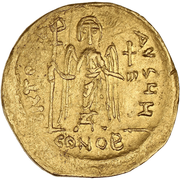 Rv. VICTORIA - AVGy (H)/ CONOB. Ange debout de face, tenant une longue croix chrismée et un globe crucigère.