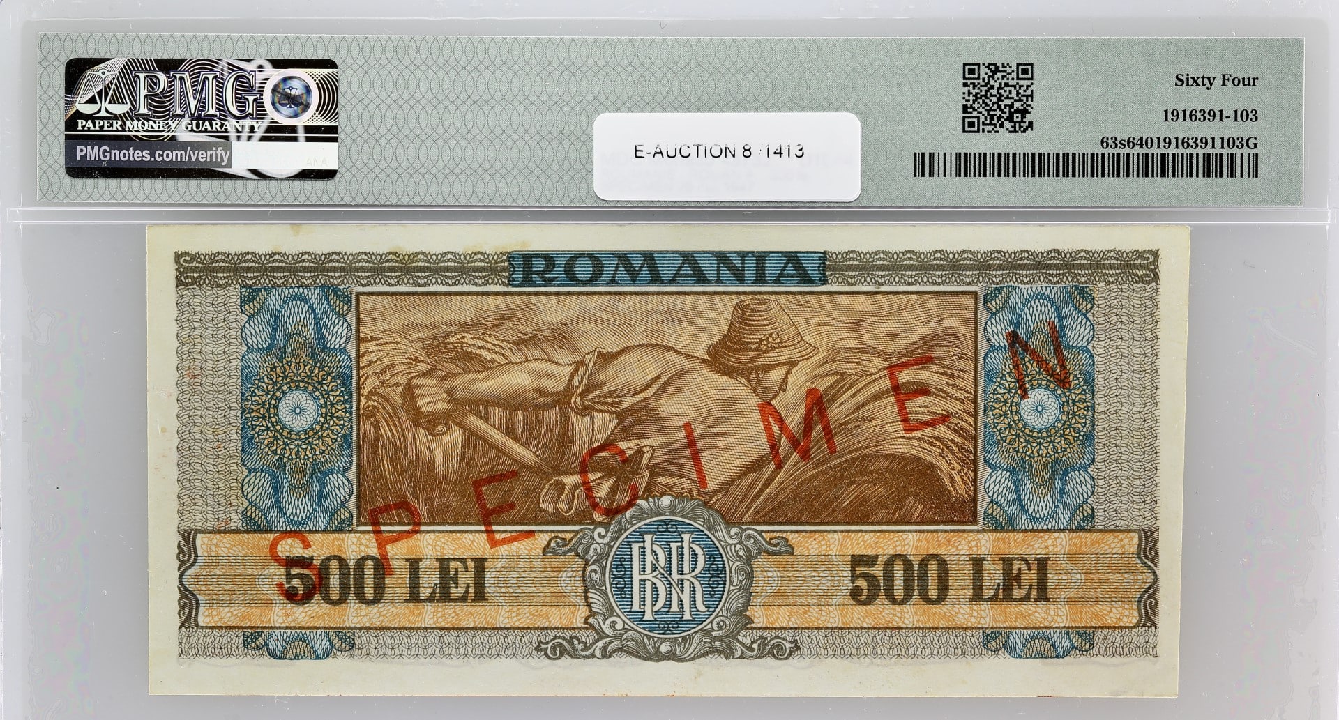 Alphabet H/1 - numéro 0000000, avec un tampon SPECIMEN en rouge en oblique au recto et au verso du billet de banque. Type rare et recherché dans tous les états de conservation. Moins de 20 exemplaires référencés dans la base de population PMG à ce jour.