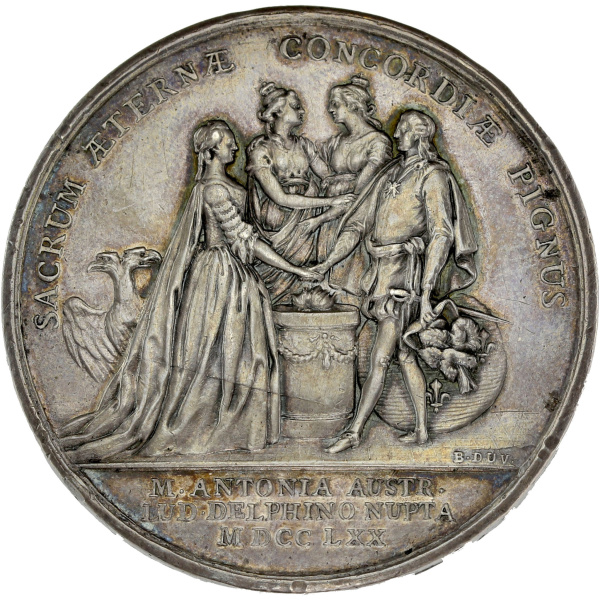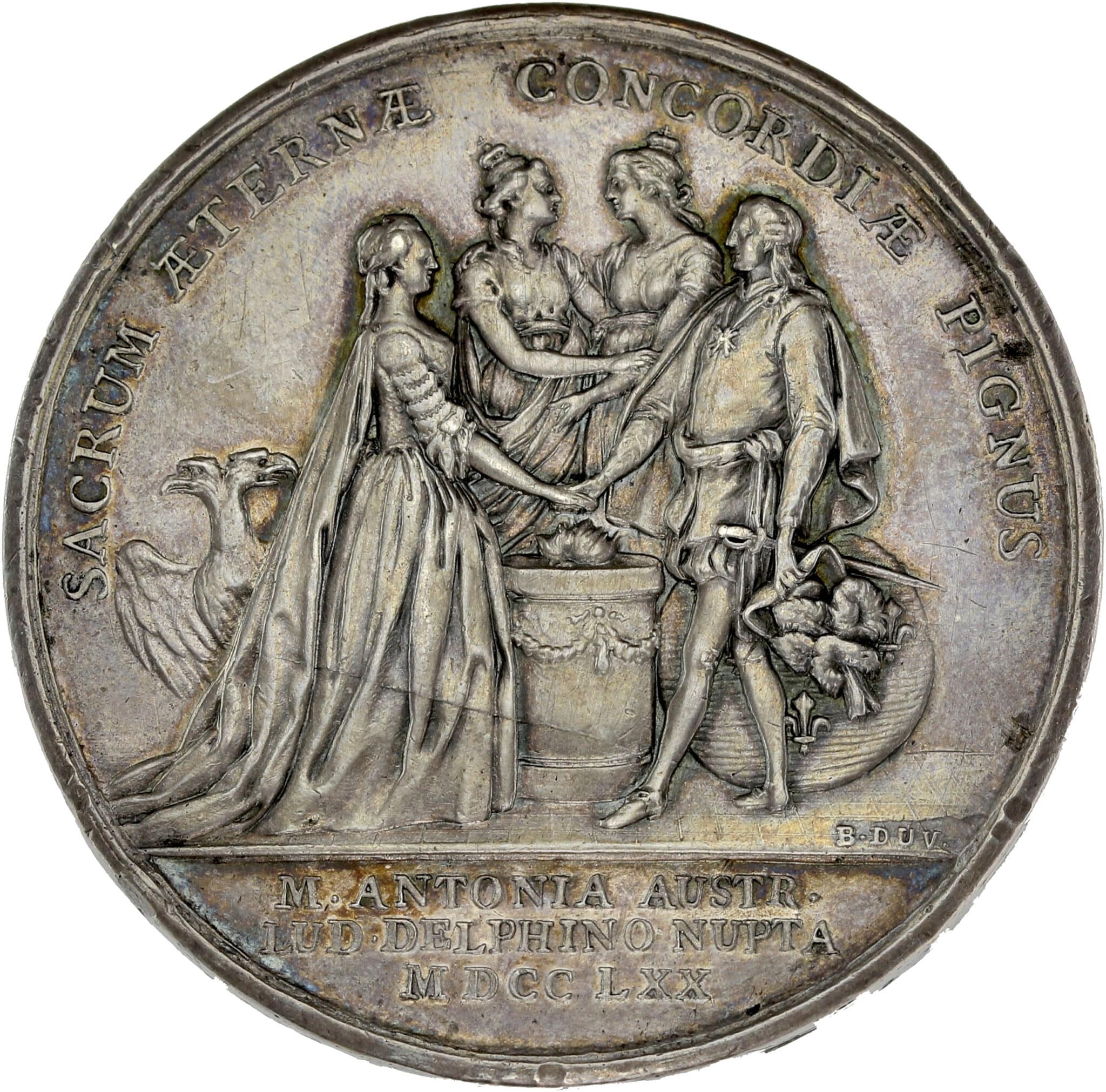 Louis XV (1715-1774). Médaille, mariage du dauphin Louis (XVI) et de Marie-Antoinette par Duvivier 1770.
