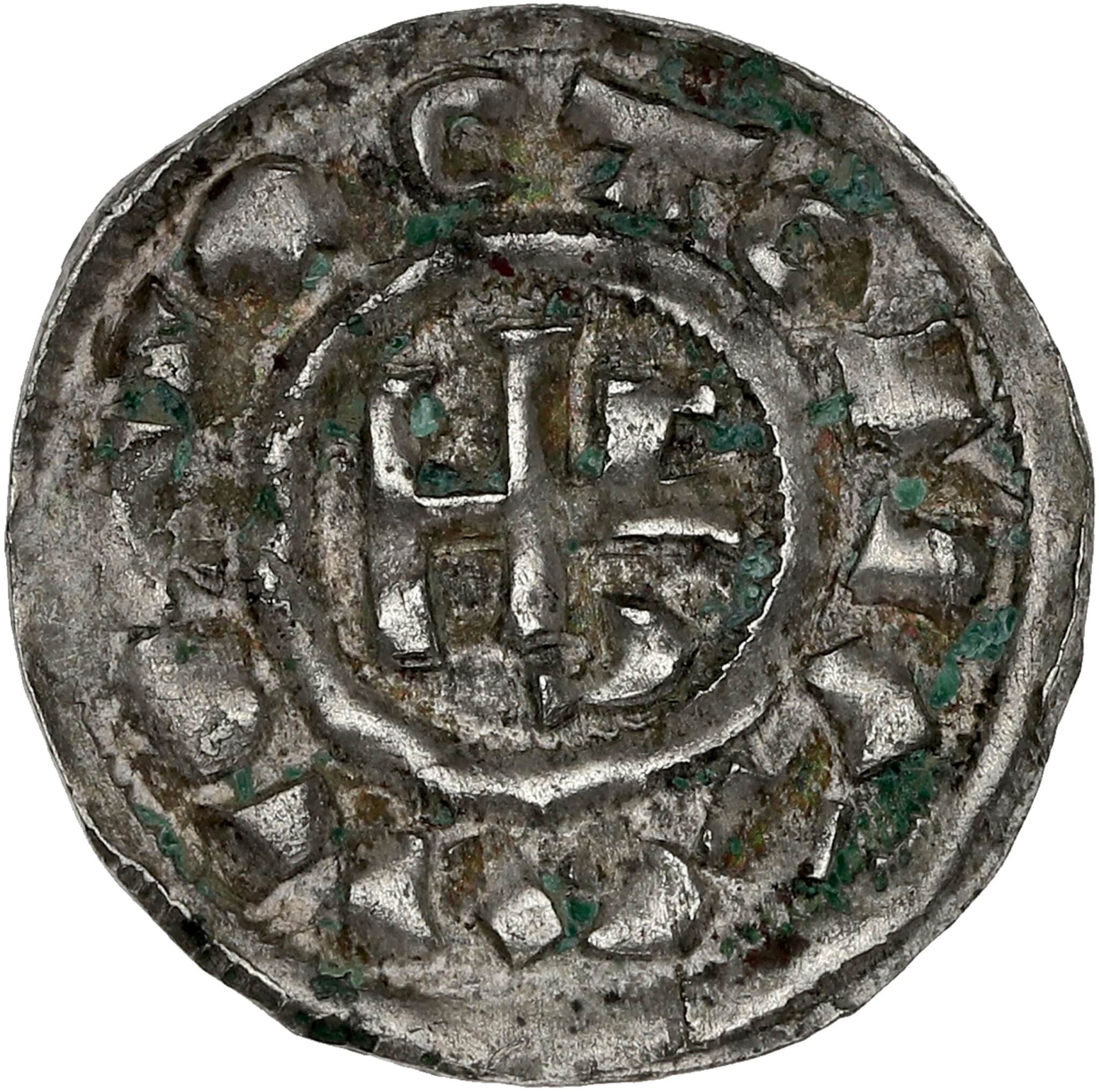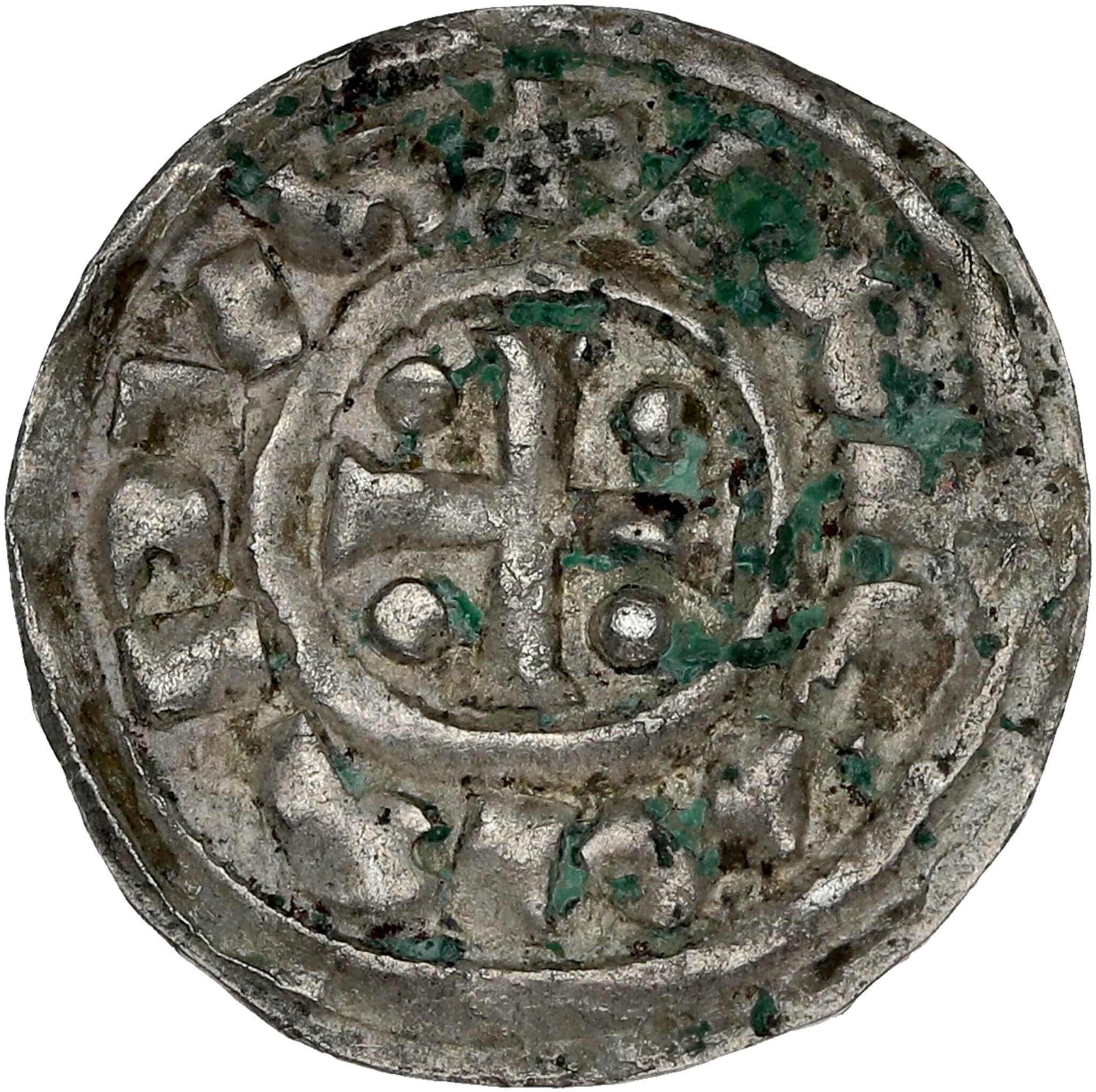 Avec monogramme de l’archevêque Hugues ? Légères concrétions vertes. Superbe.