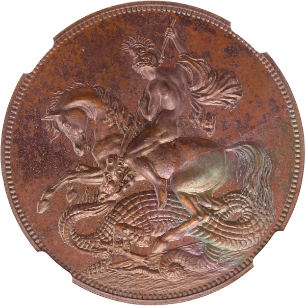 Victoria (1837-1901). Essai fantaisie de la couronne (Crown) au dragon (INA RETRO ISSUE), Flan bruni (PROOF) 1879 DRG (frappe moderne).