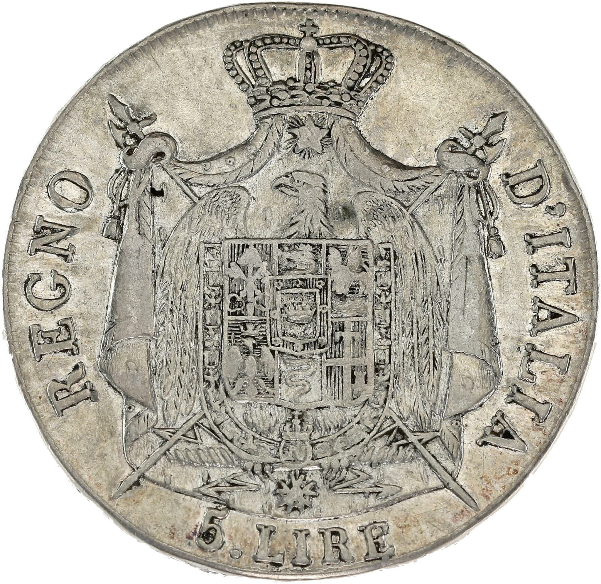 Milan, royaume d’Italie, Napoléon Ier (1805-1814). 5 lire 1809, B, Bologne.