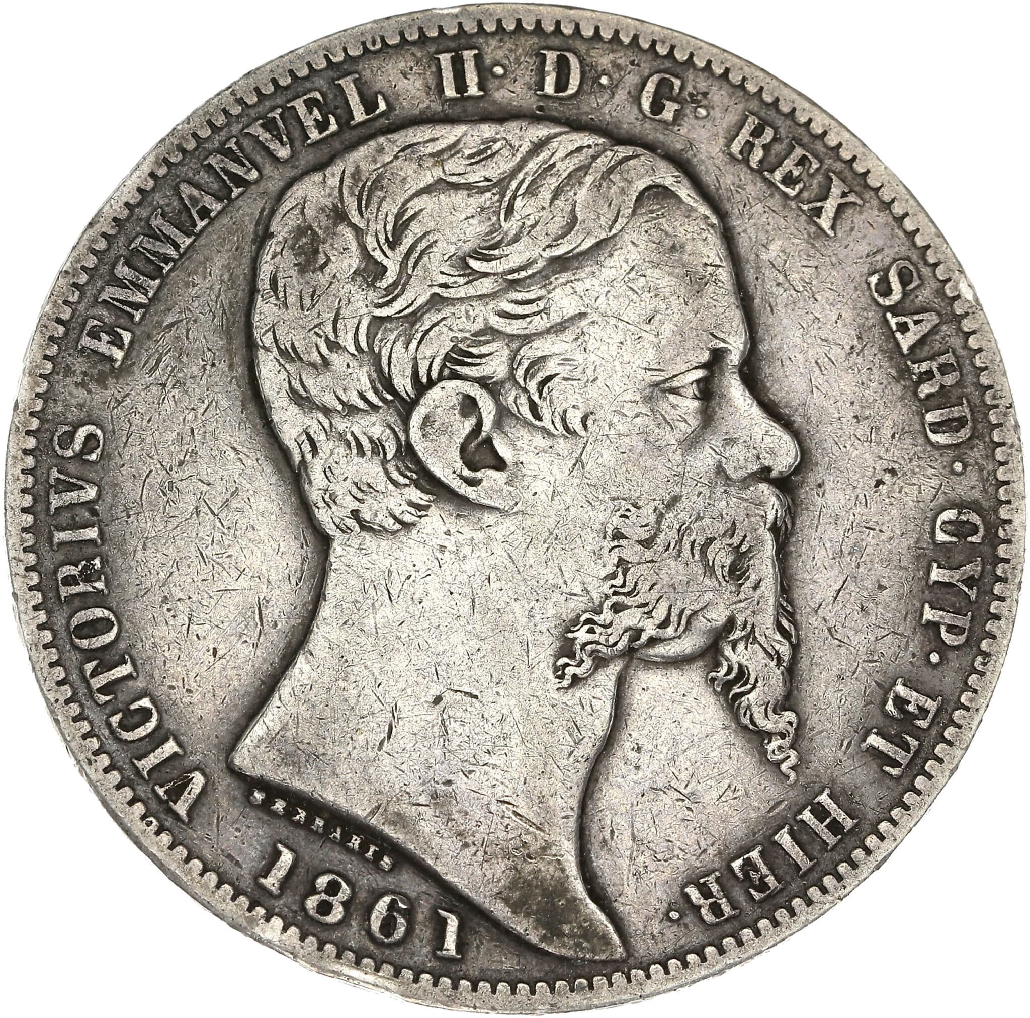 Savoie-Sardaigne, Victor-Emmanuel II (1849-1861). 5 lire 1861, Tête d’aigle, Turin.