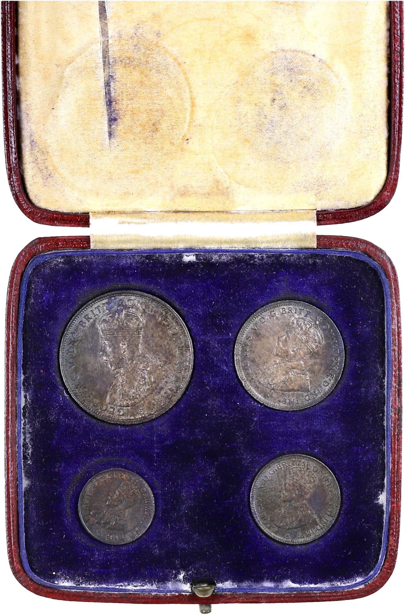 Georges V (1910-1936). Coffret contenant 4 monnaies en Argent 1913.