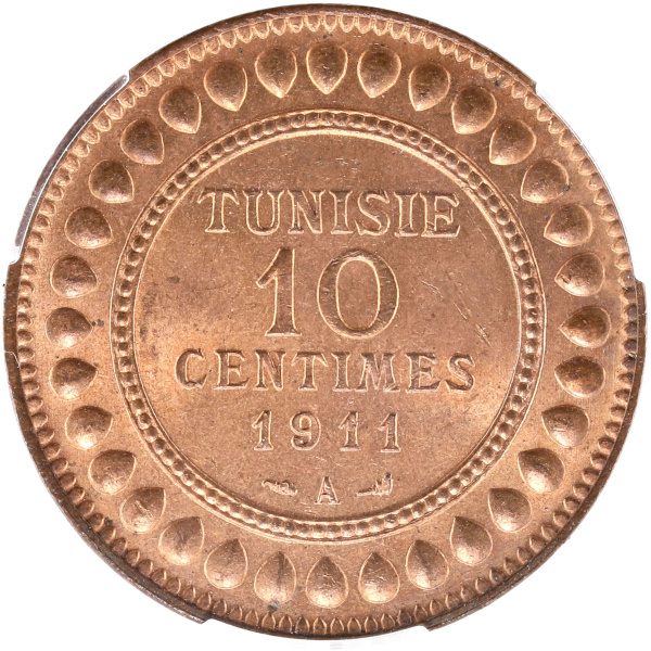Mohamed el-Naceur, Bey (1906-1922). 10 centimes 1911, A, Paris.
