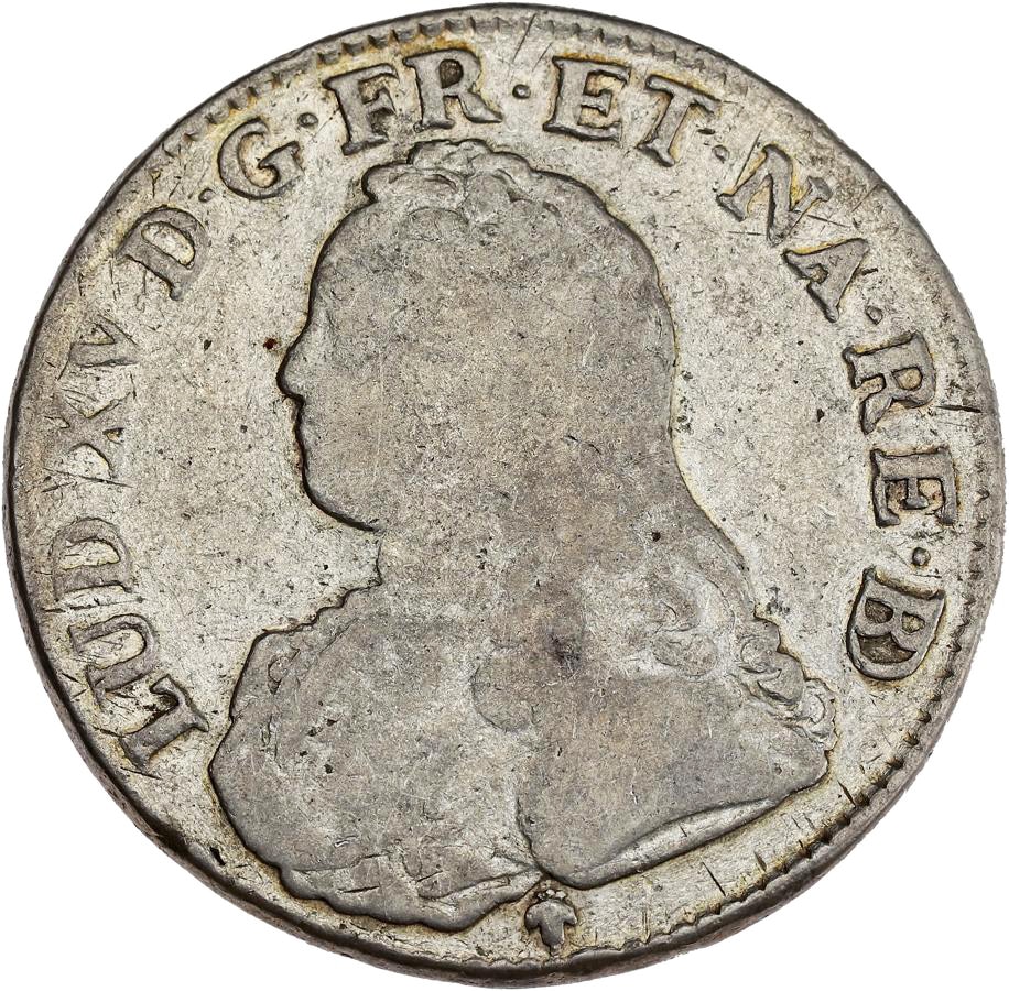 Av. LUD. XV. D. G. FR. ET. NA. RE. BD. Buste du Roi à gauche, la tête nue, portant une veste brodée avec la croix de l’ordre du Saint-Esprit ; au-dessous (différent).