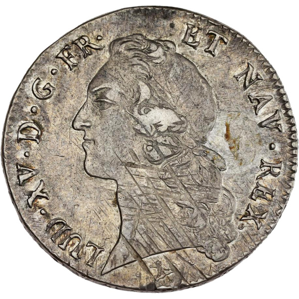 Rv. SIT. NOMEN. DOMINI. BENEDICTUM (différent) (date). Écu de France ovale, couronné, entre deux rameaux d’olivier ; au-dessous (atelier).